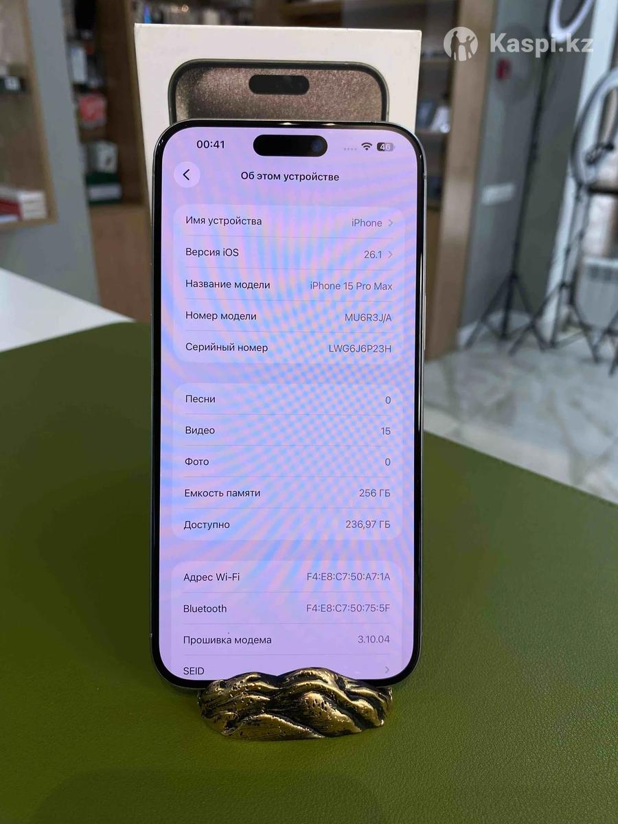 IPhone 15 Pro Max, Natural, 256 GB Емкость аккумулятора 96%. Состояние хорошее. На дисплее есть пару царапин. Обмен не интересует. В ремонте не был!!!