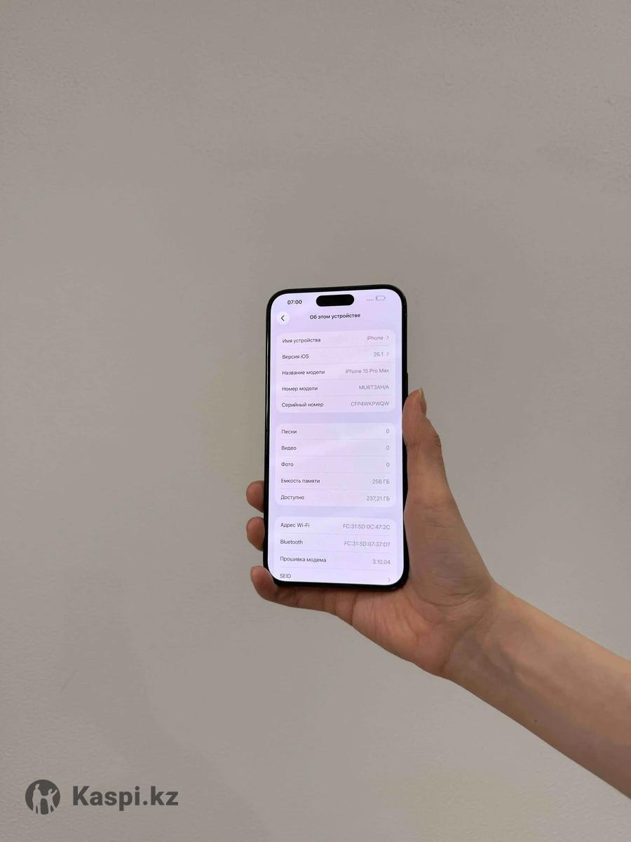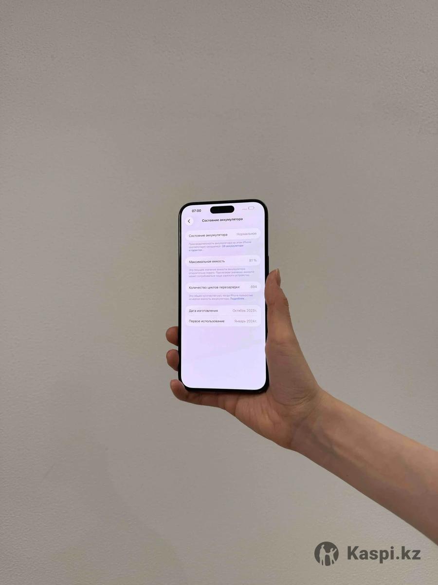 iPhone 15 Pro Max Состояние: хорошее (есть царапины) Комплектация: коробка Аккумулятор: 81% Цвет: blue titanium Память: 256 gb Цена: 330. 000 iPhone 15 Pro Max Состояние: отличное Комплектация: коробка Аккумулятор: 88% Цвет: white titan Память: 512 gb Цена: 420. 000 iPhone 15 Pro Max Комплектация: нет Аккумулятор: 87% Состояние: идеал (E-sim) Память: 512 gb Цвет: white Цена: 380. 000 iPhone 15 Pro Max Состояние: отличное Комплектация: нет Аккумулятор: 88% Цвет: natural titan Память: 256 gb Цена: 405. 000 Гарантия на год (новые) Юридическая гарантия на 14 дней Цена указана за наличный расчет Kaspi Red + % Kaspi кредит + % Kaspi bank рассрочка Jusan рассрочка Halyk bank рассрочка Freedom Finance рассрочка Trade-in - обмен, покупка, продажа Доставка по Алматы и РК В наличие есть много других моделей от apple, подробнее на Инстаграм: мы реализуем оригинальную технику, которая ранее была в использовании. Б/у и запечатанные телефоны, ноутбуки, наушники итд, есть функция trade-in. Адрес: Макатаева 81 (звонить заранее до приезда)