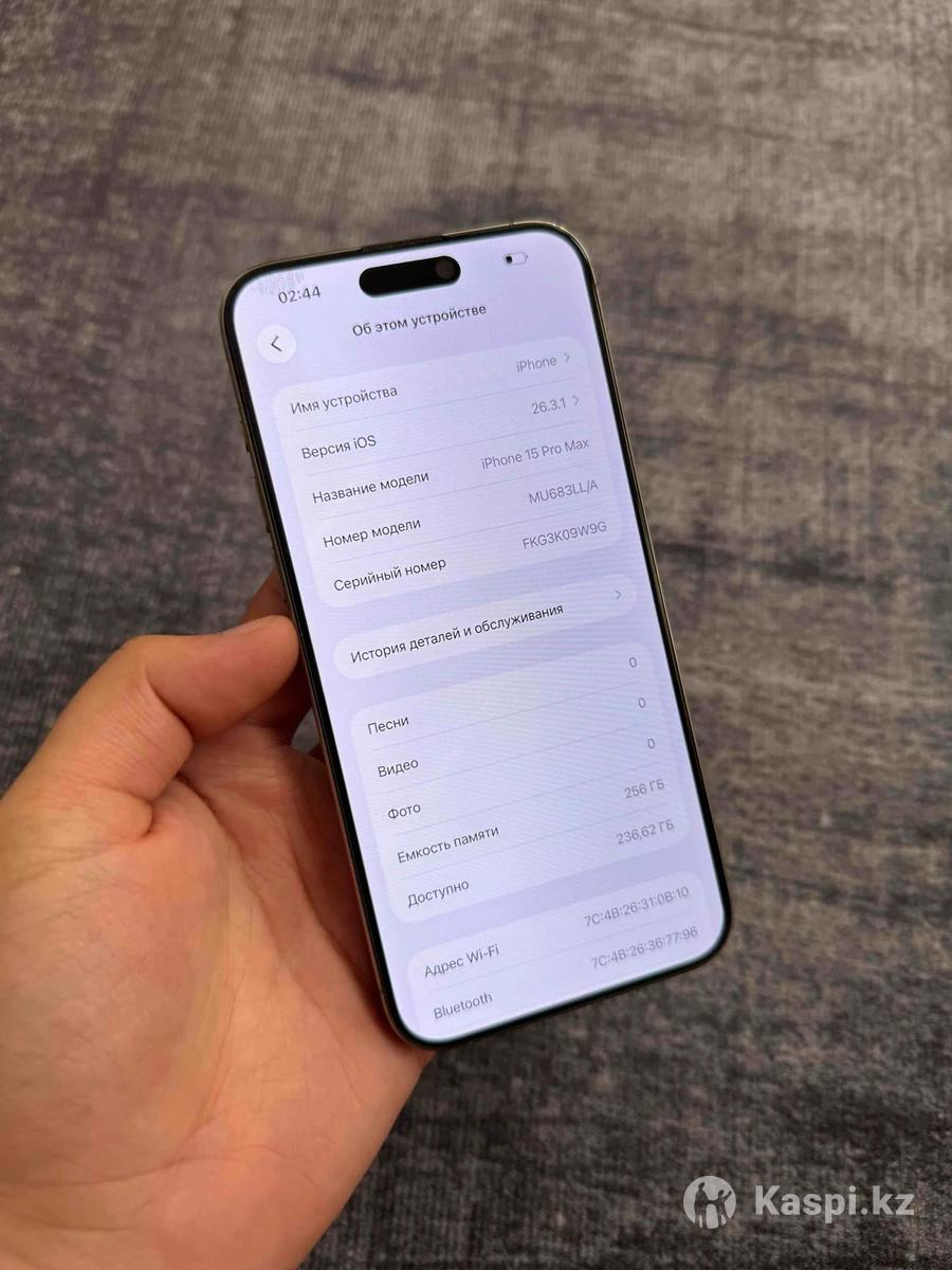 iPhone 15 Про Макс 256гб в идеальном состоянии. Состояние: Идеальное. Экран: Без царапин. Корпус: Без дефектов. Состояние аккумулятора: 85% Комплект: Только телефон. Минусы: Менялась камера на оригинал, и есть косяк на верхнем левом углу дисплея на работу не влияет на фото видно. Функции: Face ID, True Tone все работает. По любым вопросам пишите или звоните.