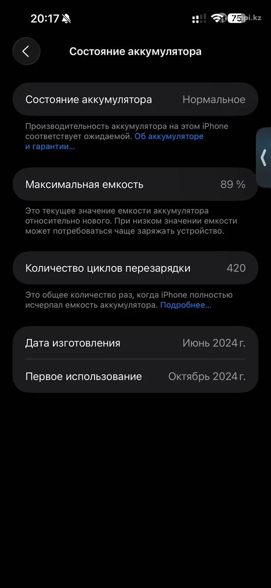 Состояние аккумулятора 89% Память 256гб Цвет Natural Titanium Не звонит! Только сообщение
