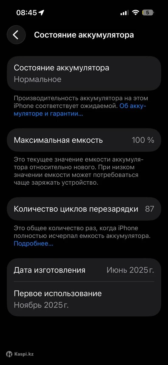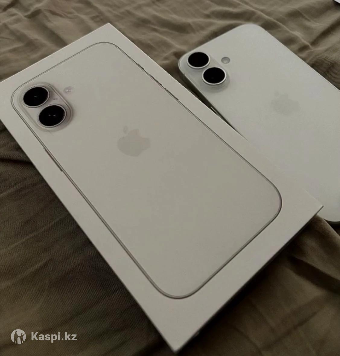 iPhone 16 в белом цвете. Телефон практически новый в использовании всего третий месяц. Покупался новым, один владелец. Минимальный объем памяти 128 GB. Состояние идеальное, без царапин и дефектов, как из магазина. Ёмкость аккумулятора 100%. Полный комплект: коробка и зарядное устройство в наличии. Цена — 320 000 тенге.