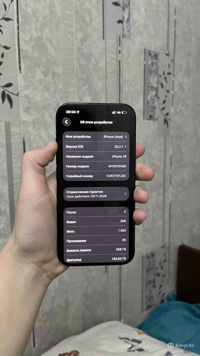 📱 Модель: iPhone 16 💾 Память: (256 ГБ) 🎨 Цвет: (черный) 🔋 Состояние аккумулятора: 100% 📦 Комплектация: полный комплект (коробка, кабель) 🛡 Без царапин и дефектов 🔓 Не вскрывался, не ремонтировался Телефон работает отлично, без лагов и скрытых проблем. Причина продажи: (срочно нужны деньги ). 💰 Цена: 450.000 📍 Город: (Almaty)