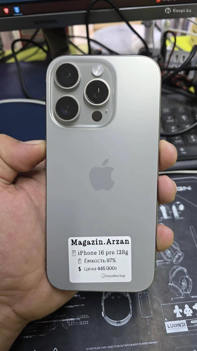 iPhone 16 pro 128g Ёмкость 97% Цена 445 000 Коробка Бар Ремонт болмаған Ешкандай Минусы жоқ