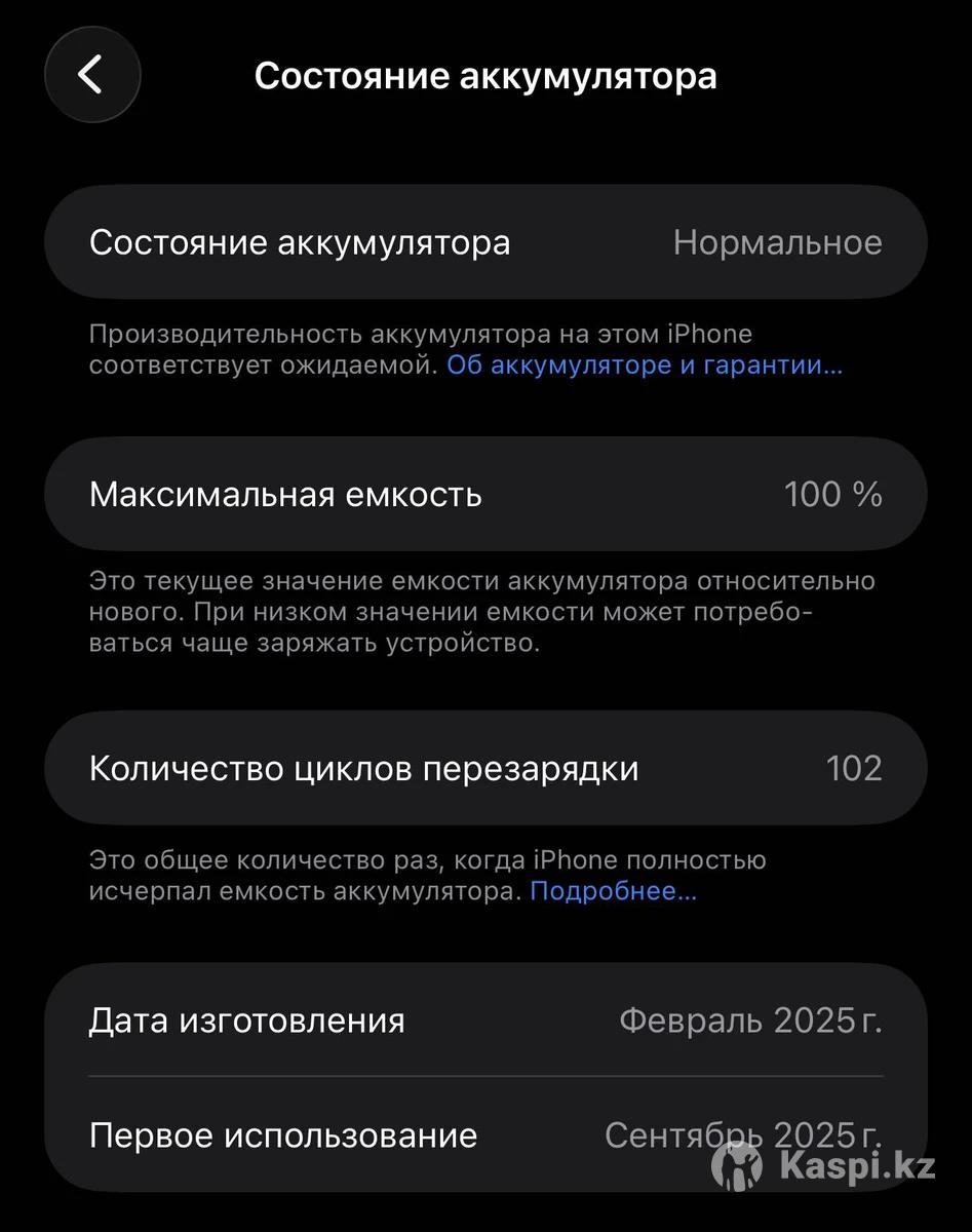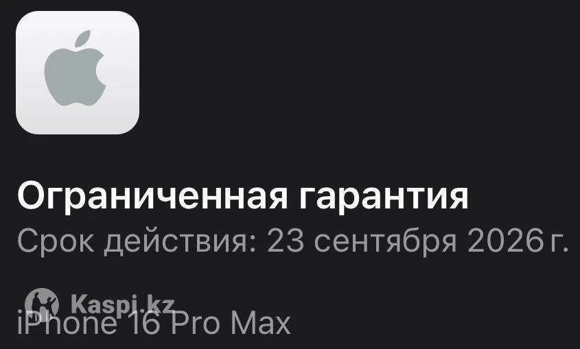 Продам iPhone 16 Pro Max 1ТБ Состояние нового без микроцарапин, использовался очень бережно. Верифицирован. • Состояние АКБ: 100%, 102 цикла зарядки. • Гарантия до 23 сентября 2026 года. • Версия: LL/A (США). Работает только с eSIM. • Цвет: Black Titanium (Черный титан). Полный заводской комплект (коробка, кабель), оригинальное защитное стекло Spigen без рамок, кевларовые чехлы Benks. Общая сумма чехлов 85$ Телефон без ремонтов, вскрытий и подводных камней. Любые проверки с вашей стороны приветствуются. Продаю в связи с переходом на 17 модель. Торг приветствуется!