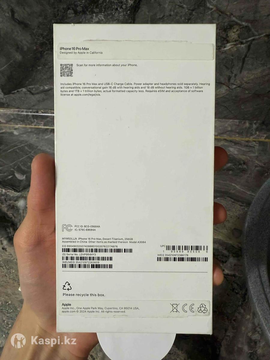 Продаю Iphone 16 Pro Max 256Gb Аккумулятор: 93 % Ничего не менялось всё оригинал! С коробкой как положенно.