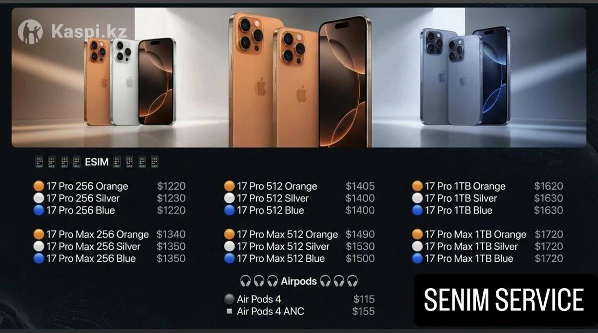 Все модели новые 📱📱📱📱 ESIM 📱📱📱📱 🟠 17 Pro 256 Orange $1220 ⚪️ 17 Pro 256 Silver $1230 🔵 17 Pro 256 Blue $1220 🟠 17 Pro 512 Orange $1405 ⚪️ 17 Pro 512 Silver $1400 🔵 17 Pro 512 Blue $1400 🟠 17 Pro 1TB Orange $1620 ⚪️ 17 Pro 1TB Silver $1630 🔵 17 Pro 1TB Blue $1630 🟠 17 Pro Max 256 Orange $1340 ⚪️ 17 Pro Max 256 Silver $1350 🔵 17 Pro Max 256 Blue $1350 🟠 17 Pro Max 512 Orange $1490 ⚪️ 17 Pro Max 512 Silver $1530 🔵 17 Pro Max 512 Blue $1500 🟠 17 Pro Max 1TB Orange $1720 ⚪️ 17 Pro Max 1TB Silver $1720 🔵 17 Pro Max 1TB Blue $1720 🎧🎧🎧🎧 Airpods 🎧🎧🎧🎧 🔘 Air Pods 4 $115 ▫️ Air Pods 4 ANC $155