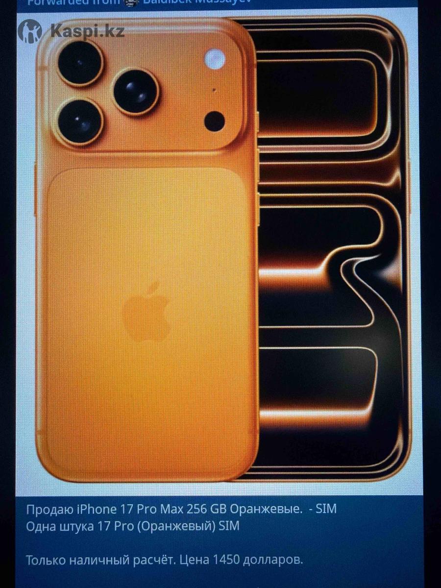 Продаю iPhone 17 Pro Max 256 GB Оранжевые. - SIM Одна штука 17 Pro (Оранжевый) SIM Только наличный расчет. Цена 1450 долларов. Все были куплены в ISpace. Есть чеки (физические, электронные). Гарантия от ISpace.