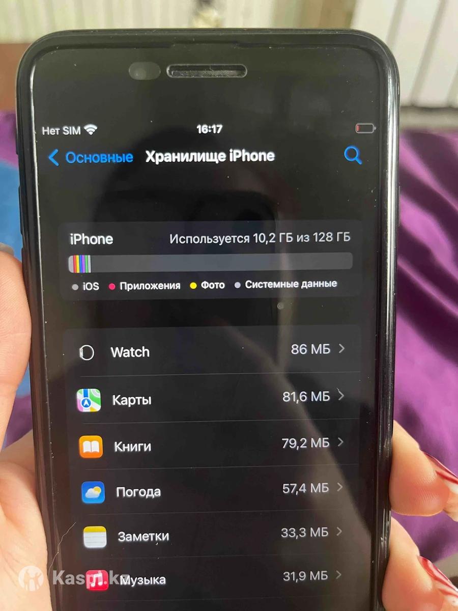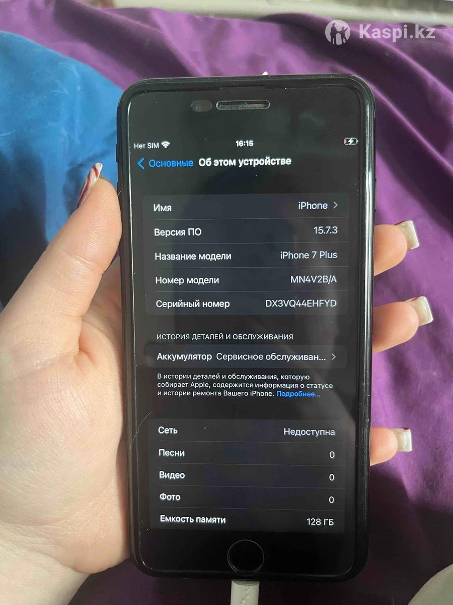 продаю Айфон 7 плюс • имеются небольшие царапины на корпусе • состояние аккумулятора 76% желательно поменять аккумулятор и гнездо • коробка имеется • немного лагает экран