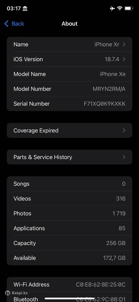 iPhone XR 256 гб, покупался в 2020 в iPoint (iSpace), один хозяин, все время в одних руках, официально ввезенный в РК (не серый айфон все SIM карты работают), Коробка, документы есть. Face id (фейс айди) работает, True tone (трутон) работает, тач скрин работает, айклауд чистый не заблокированный, экран оригинал, в общем и целом все функции работают отлично. В Апреле 2025г. меняли на новая батарею, заряд держит шикарно. Можно пересобрать в новый корпус 17 или 17 PRO айфона, многие сейчас так делают. Желательно пишите в , номер указан.