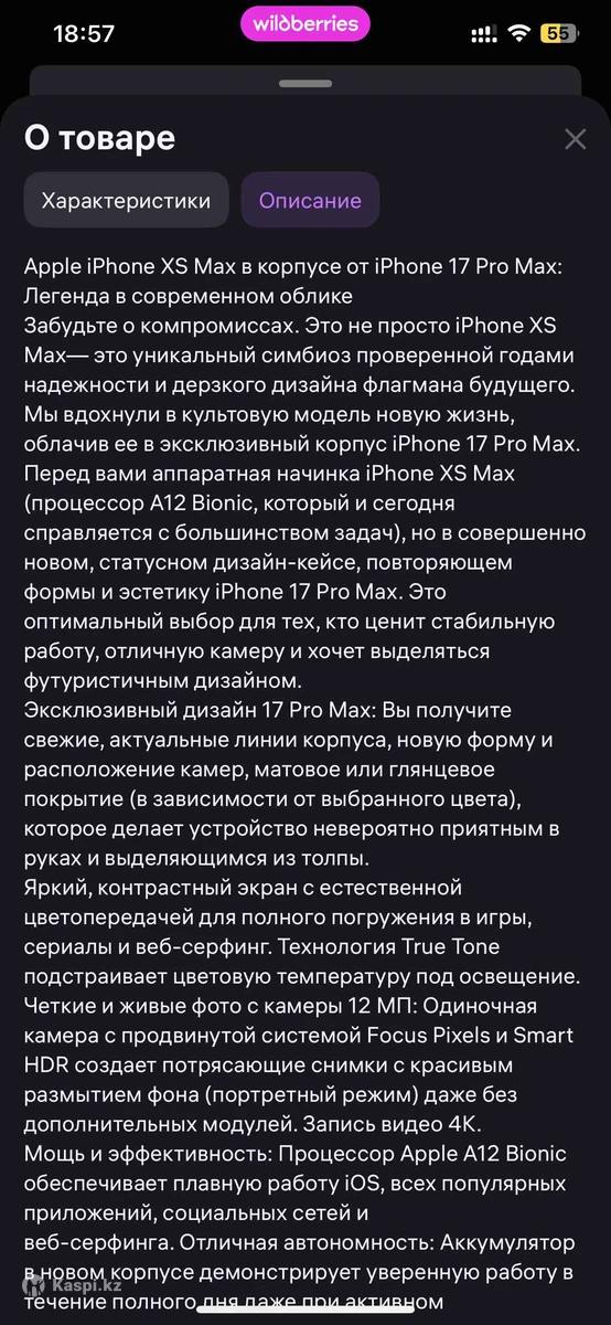 Это не копия. Это оригинальный восстановленный айфон XS max в корпусе 17про Макса. Nano sim+ eSIM нужно верифицировать в Казахстане покупался в Китае. Память 256гиг. Коробка зарядка. Чехол.