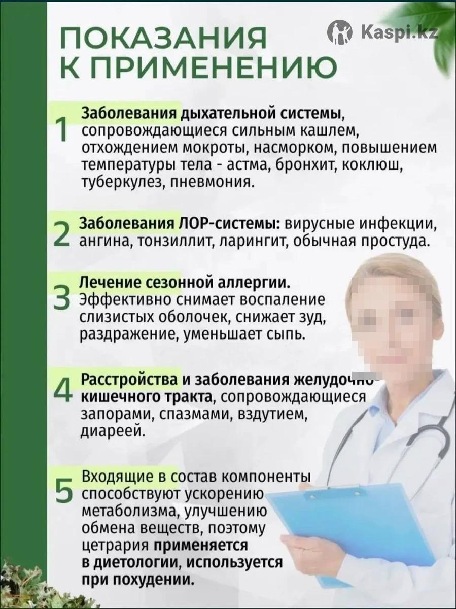 Продаю Исландский Мох от Mumtaz. Оказыыает антибактериальное, противовоспалительное средство растительного происхождения. Применяется в качестве вспомогательной терапии при кашле, коклюше, бронхите, пневмонии,гастрите, сниженном аппетите, язвенной болезни желудка, кишечных инфекциях. Исландский мох Мумтаз 1) нормализует функции желудочно-кишечного тракта, 2) борется с инфекционными заболеваниями полости рта, воспалением горла, простудой, 3) устраняет депрессивные состояния и нормализует сон, 4) улучшает обменные процессы, ускоряет заживление, 5) стимулирует иммунитет, восстанавливая естественные защитные функции организма От бронхолегочных заболеваний существует немало лекарств, но, антибиотики вредны для организма, нарушают работу ЖКТ, уничтожают микрофлору кишечника. Хорошая альтернатива - лечебные травы. Щадящее средство от затяжного кашля, коклюша, бронхита, пневмонии, астмы различного происхождения, ангины для детей и взрослых - природный антибиотик исландский мох (цетрария исландская), БАДы, травяные сборы, отвары, чай на его основе. Растительный экстракт цетрарии исландской используют при заболеваниях верхних дыхательных путей, в том числе при туберкулезе, хронических инфекционных заболеваниях, сопровождающихся повышением температуры. Биодобавка исландский мох Мумтаз - общеукрепляющее средство после тяжелых болезней, при заболеваниях желудочно-кишечного тракта (сбор трав для кишечника, ЖКТ, желудочно-кишечный сбор), для укрепления иммунитета (природный иммуномодулятор), эффективный препарат для профилактики и лечения туберкулеза. Натуральный исландский мох нормализует функции желудочно-кишечного тракта, борется с инфекционными заболеваниями полости рта, воспалением горла, простудой. Mumtaz в капсулах нормализует сон и устраняет депрессивные состояния (травяной сбор успокаивающий, чай для сна). Экстракт исландской цетрарии - это отличное натуральное дезинфицирующее, обезболивающее, отхаркивающее, тонизирующее и антибактериальное средство. Препарат улучшает обменные процессы, ускоряет заживление, стимулирует иммунитет, стимулируя естественные защитные функции организма. Биологически активная добавка на основе исландского мха облегчает дыхание, способствует похудению и улучшению кожи, поэтому широко применяется для женщин (женский травяной сбор, детокс, очищающий травяной чай для похудения) по всему миру. Для мужчин травяной сбор из очищенного исландского мха ценится за противовоспалительные свойства и способность излечивать мужские заболевания. УСЛОВИЯ ХРАНЕНИЯ Оптимальными условиями для порошков, капсул и других форм16 выпуска считаются: • Температура воздуха до 25 градусов по Цельсию. • Отсутствие попадания прямых солнечных лучей.