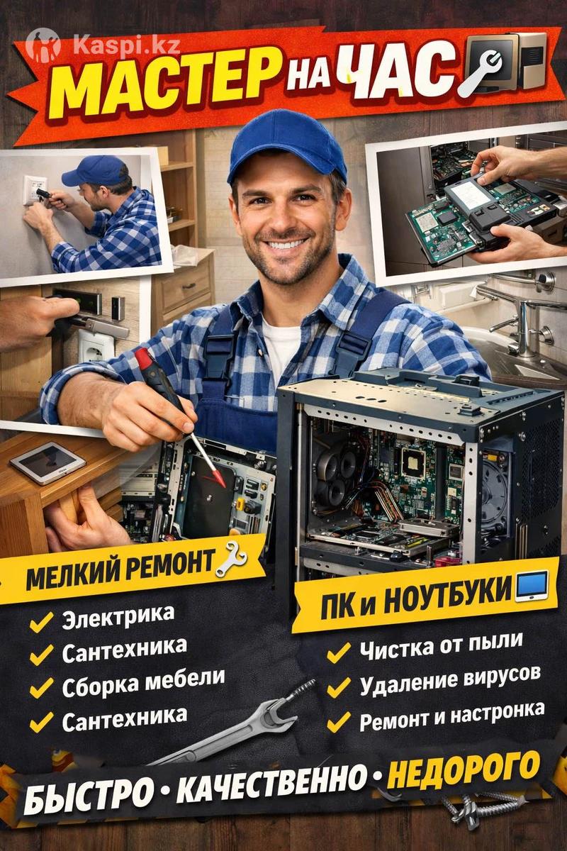 Помогу по дому и с техникой: 🔩 мелкий бытовой ремонт 💡 электрика 🚰 сантехника 🪑 сборка мебели 💻 ПК и ноутбуки: • настройка Windows • установка программ • чистка от пыли и перегрева • удаление вирусов • ускорение работы • замена термопасты, SSD, RAM ✅ Опыт ✅ Свой инструмент ✅ Выезд на дом