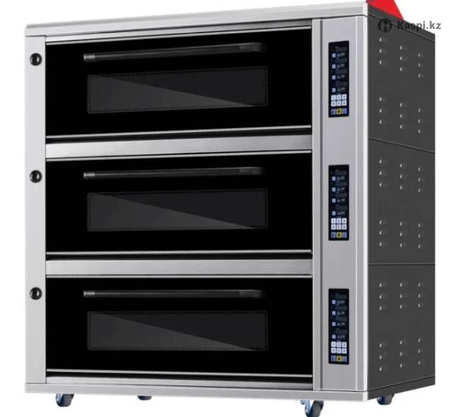 Жарочный шкаф 3х6. Подовый с паром Трехъярусная электрическая печь KPS-36A с паром и каменными плитами KPS-36A — это профессиональная электрическая печь с тремя уровнями и шестью противнями, идеально подходящая для пекарен, кондитерских, пиццерий и столовых. Встроенная система парогенерации (2×2000 Вт) создает оптимальные условия для выпечки хлебобулочных изделий. ✅ Основные характеристики: • 🔥 Каменные плиты (638×430 мм ×6) равномерно распределяют тепло, придавая выпечке хрустящую корочку и мягкую середину. • 💨 Тройная парогенерация по 2000 Вт — создает влажную среду для идеального подъема и золотистой корочки. • ⚙️ Мощность: 19 800 Вт • 🔌 Питание: 380 В / 3 фазы / 50 Гц • 🌡️ Температурный режим: от 50°C до 350°C • 💧 Опционально: внешний водяной насос для автоматической подачи воды в парогенераторы 📐 Размеры: • Габаритные размеры (Ш×Г×В): 1160×830×1280 мм • Размеры камеры (Ш×Г×В): 870×640×220 мм ×3 уровня • Размеры камня: 638×430 мм ×6 штук Китай 990 000 тенге Алматы Отправка по Казахстану