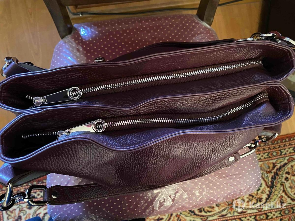 Женская сумка пр-ва Италии, кожа. Два вместительных отделения на молниях и несколько карманов.