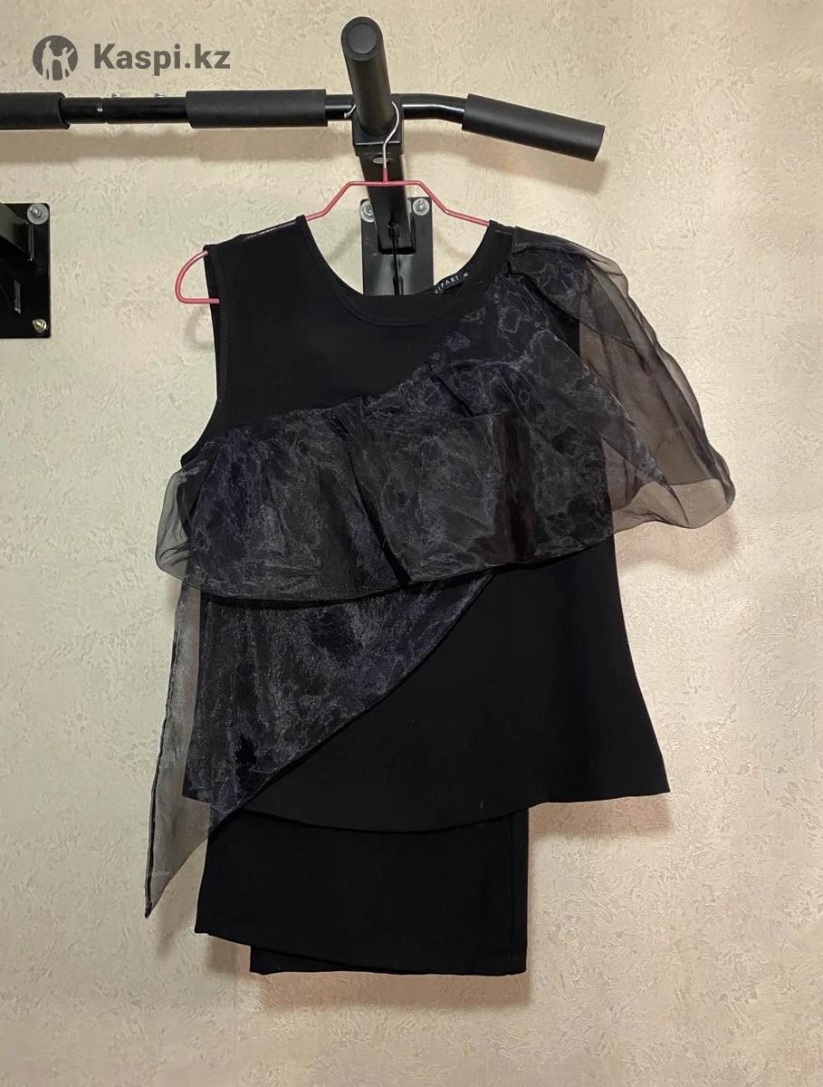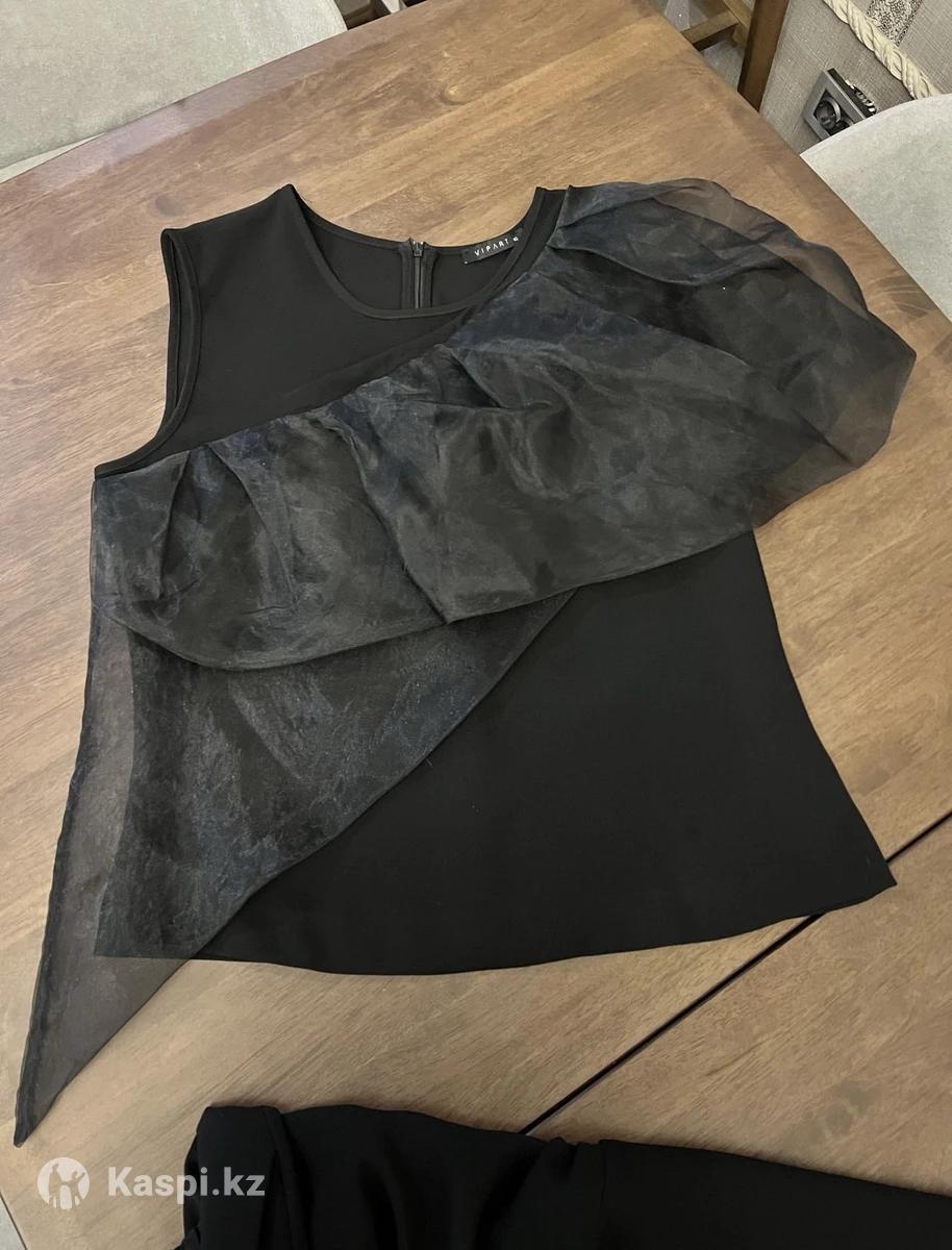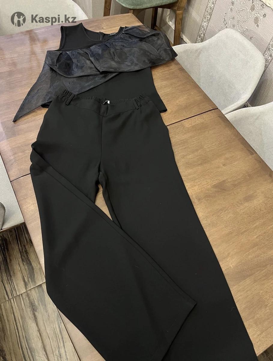 Костюм, брюки на резинке сзади, блуза с оформлением из органзы, цвет черный. В хорошем состоянии. Торг.