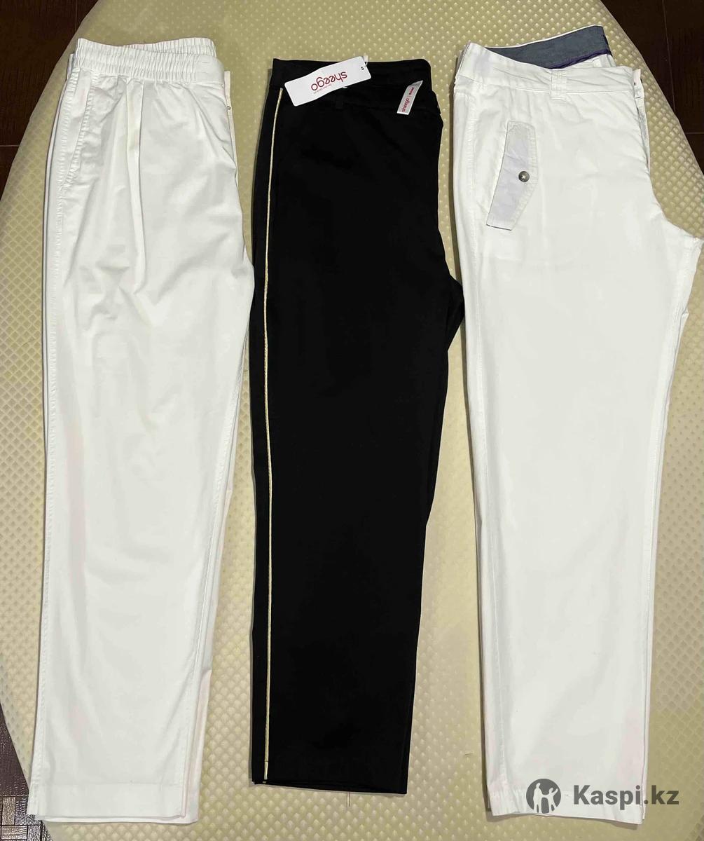 Женские брюки, белые одевала один раз, располнела, стали малы. Черные новые с этикеткой, по бокам вшитый золотой Кант. Посадка выше средней. Лекала шикарное. Сядут идеально.