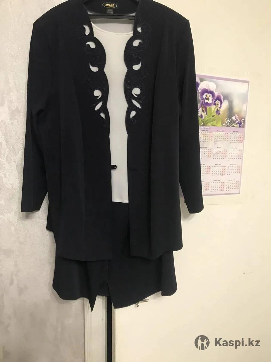 В отличном состоянии большого размера для приема и торжеств костюм синий женский тройка юбка кофта белая
