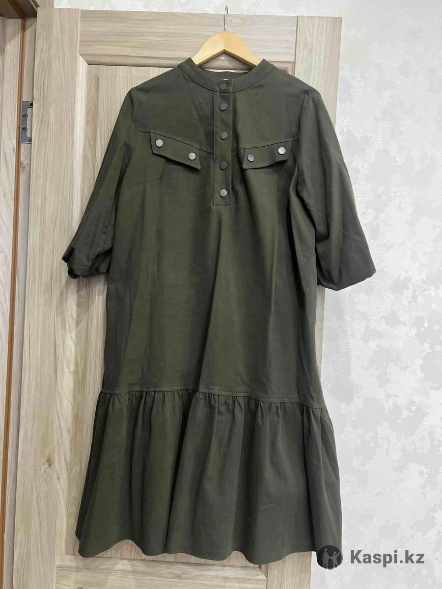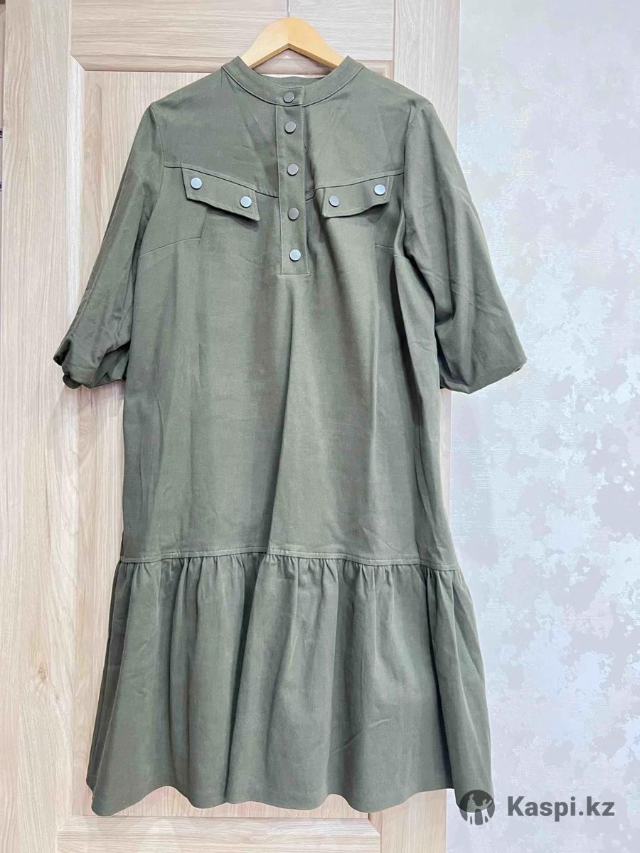 Джинсовое платье цвета хаки, подойдет на 48/50 размер, одевала 2 раза, в идеальном состоянии. Покупала в прошлом году за 50,0тг