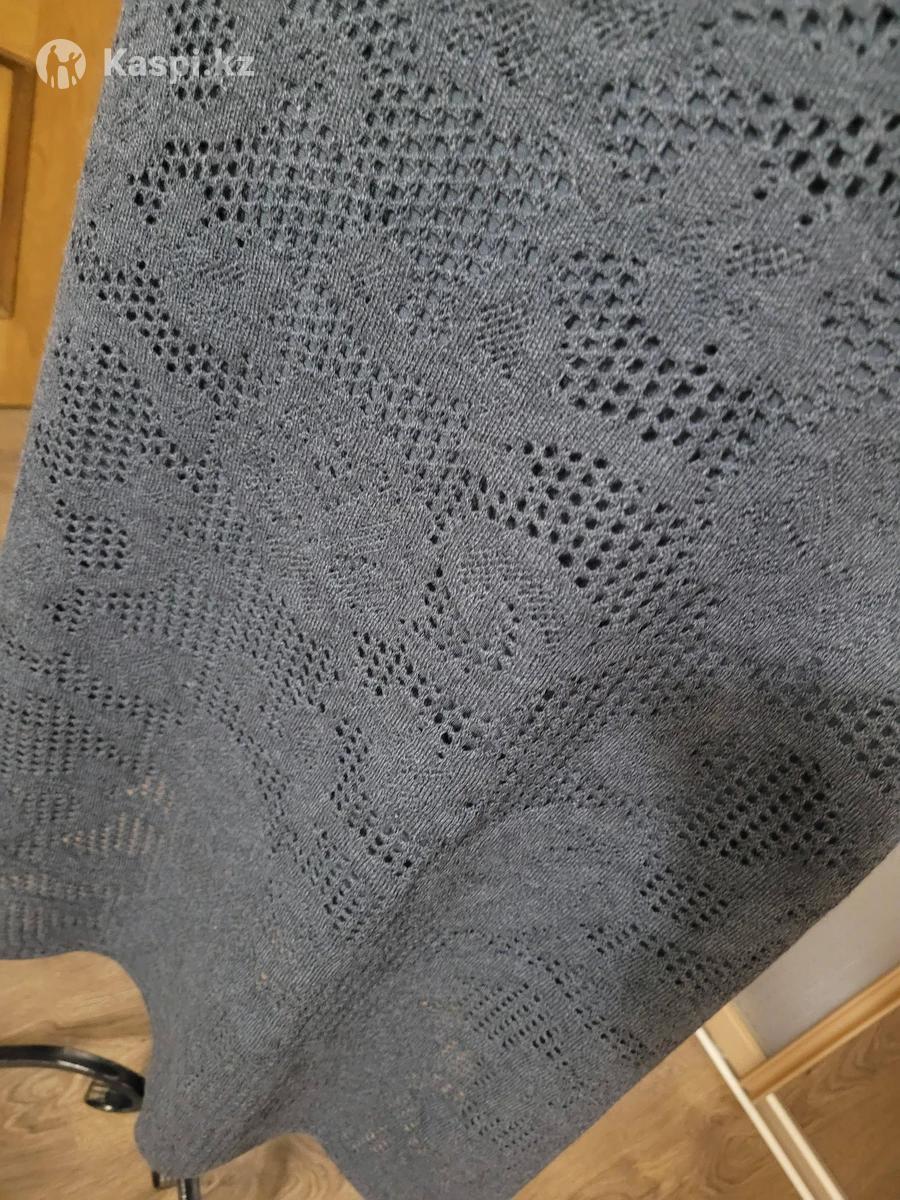 Трикотажная женская юбка 48 размер, б/у серого цвета средней длины, миди, торг уместен звоните по телефону 10 000 тенге
