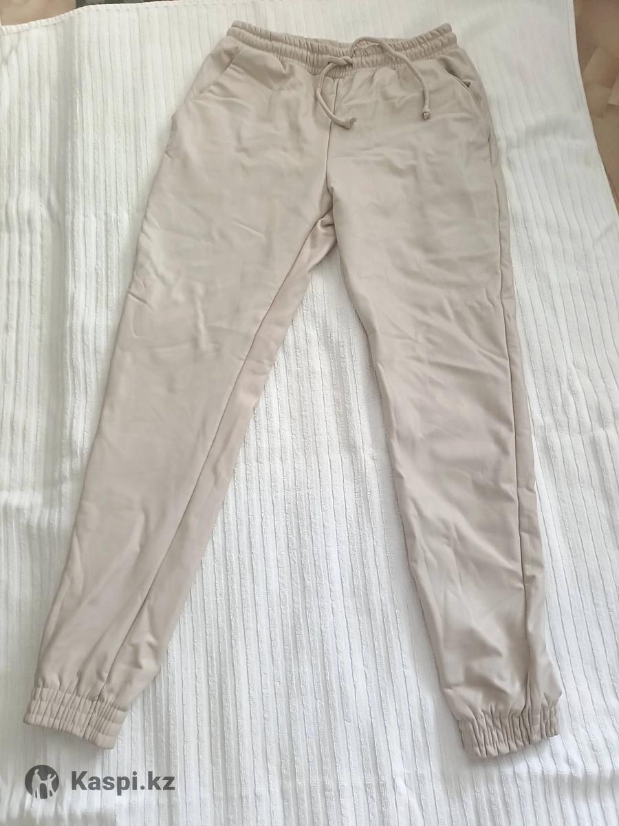 Женские брюкиң кожа в хорошем состоянии молочного цвета теплые