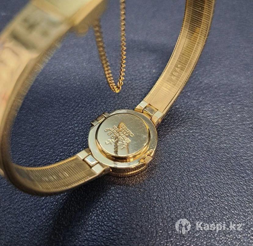 Модель: Seiko Nefertiti (выпускалась в 1980-х гг.) •Тип: кварцевые, скрытый циферблат под крышкой с изображением Нефертити •Покрытие: «Gold plated» (позолота), •Происхождение: Япония Работает отлично