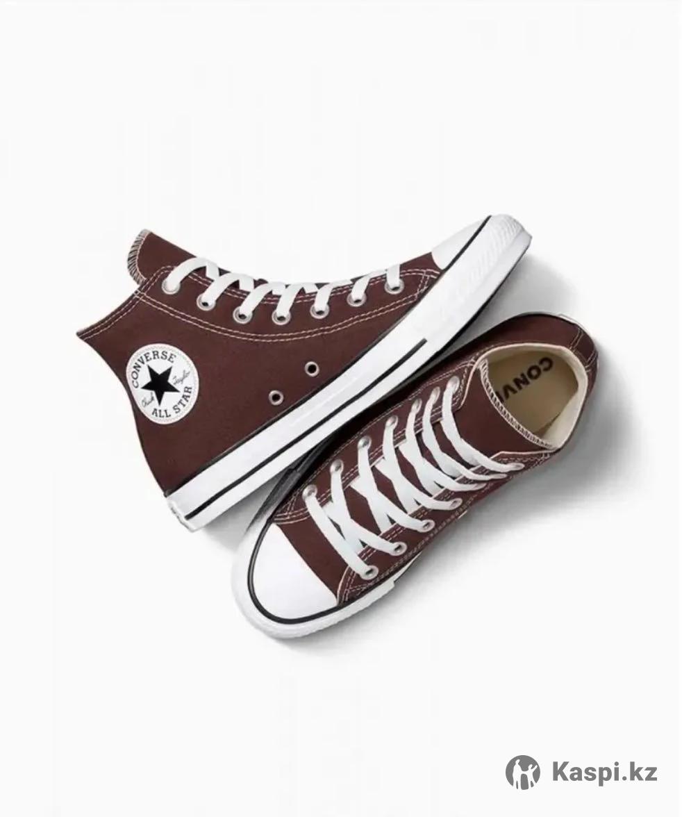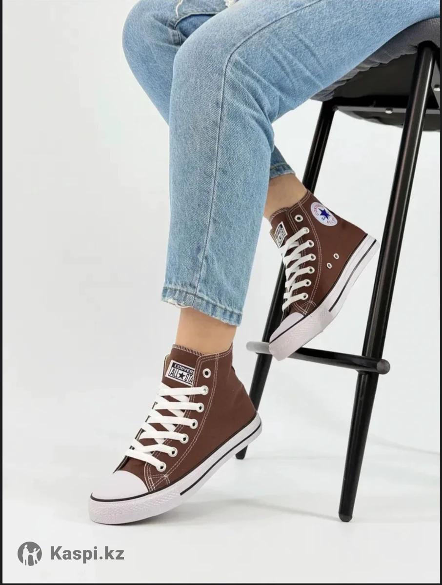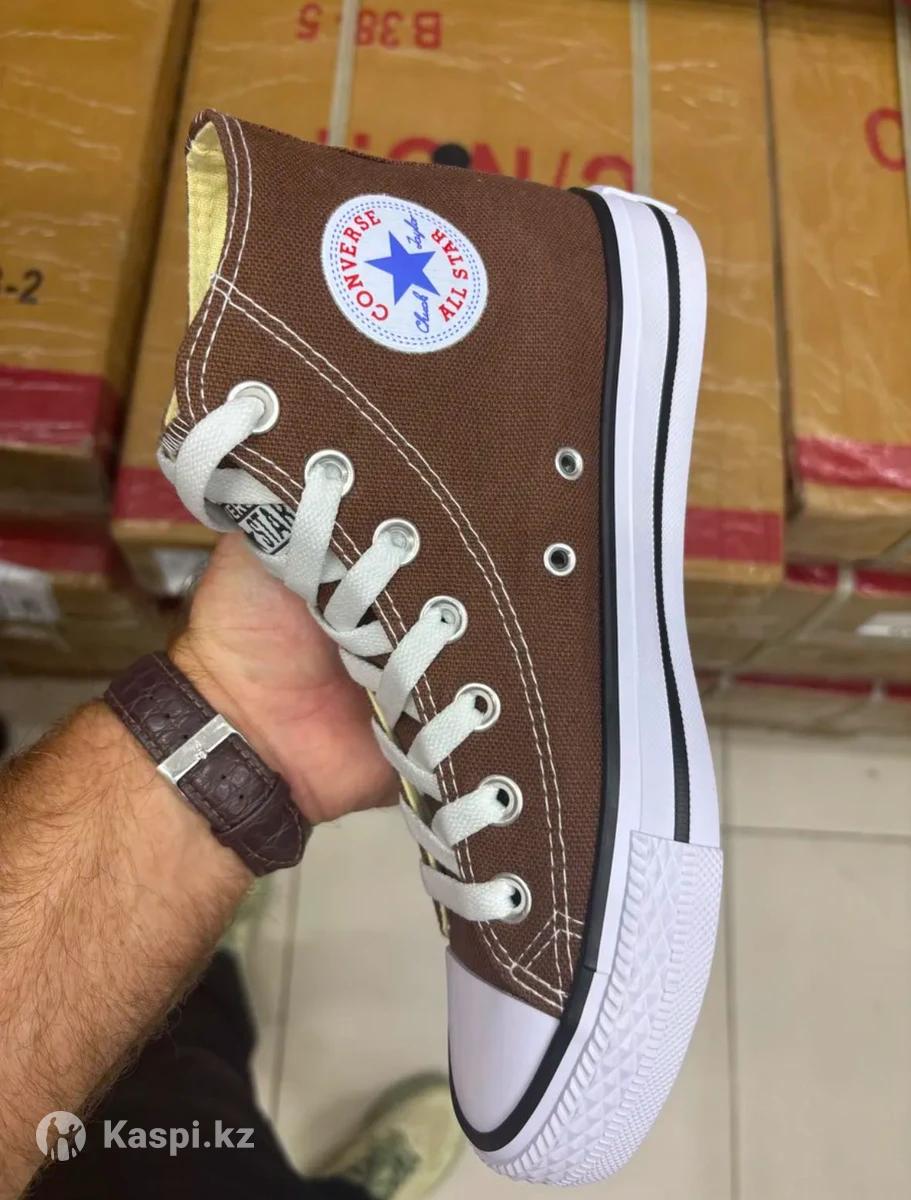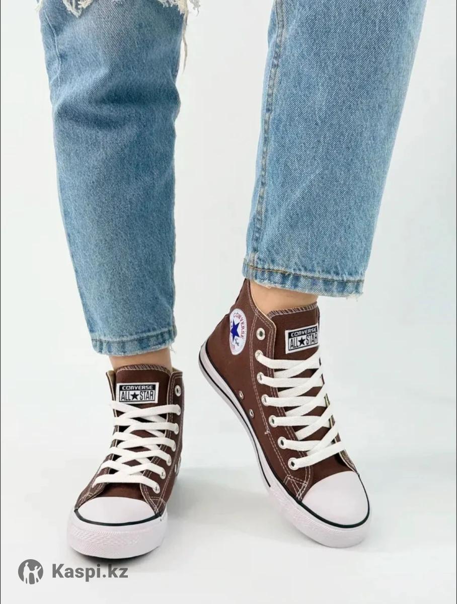ВНИМАНИЕ: КЕДЫ МАЛОМЕРЯТ НА 1 РАЗМЕР. Кеды женские Converse высокие новинка нового сезона. Модель отлично подходят любителям активного движения в помещениях и на улице в теплое время года. Кеды отличаются высокой подошвой. Изготовлены из качественного текстиля на основе хлопка, который имеет множество технологических преимуществ отличаются долговечностью и прочностью, сохраняет привлекательный внешний вид долгое время. Комфортный микроклимат для ног создают внутренние текстильные подкладка и стелька. Высокая шнуровка позволяет надежно фиксирует ногу, что предотвращает от травм голеностопа. Подошва из вулканизированной резины обладает особой гибкостью, износоустойчивостью. Цвет модели коричневый в сочетании с белыми элементами и черными полосками. Кеды для повседневных прогулок, занятием спортом. Кеды Converse стильно, комфортно, практично!