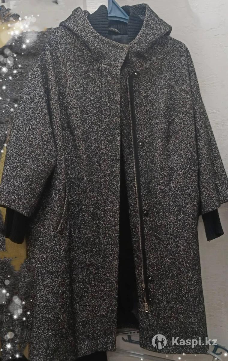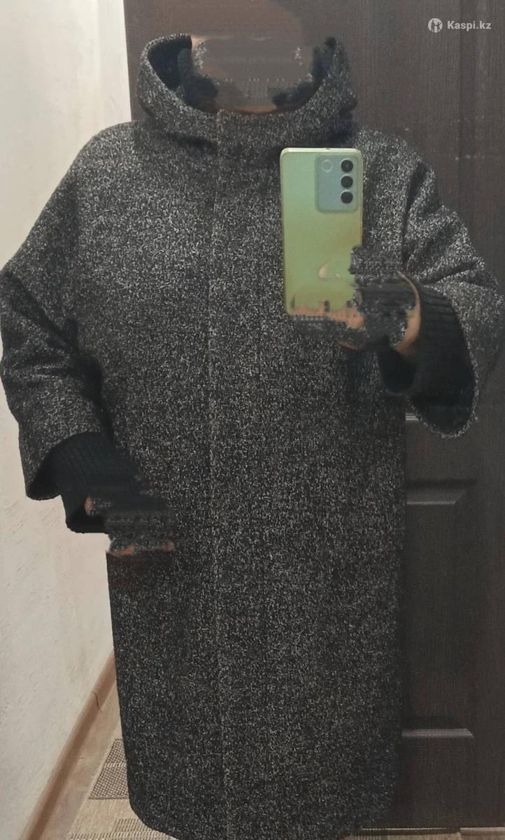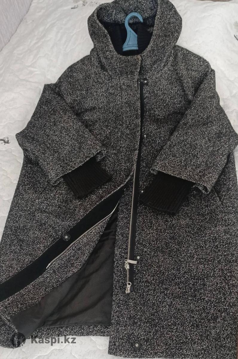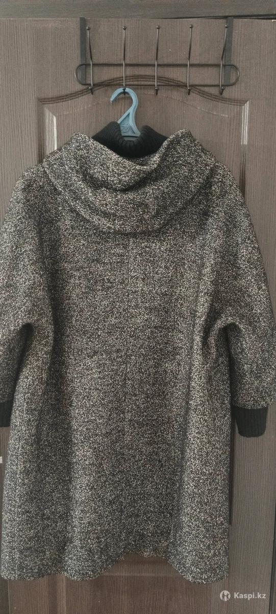 Пальто осеннее, с капюшоном, воротник вязаный, цвет серый. Застежка молния + кнопки. Состояние отличное