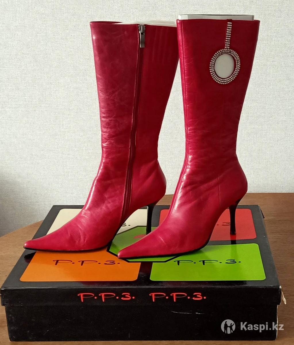 Демисезонные модельные женские сапоги из натуральной кожи. На узкую ножку. Размер 37. Цена 20 000 тг