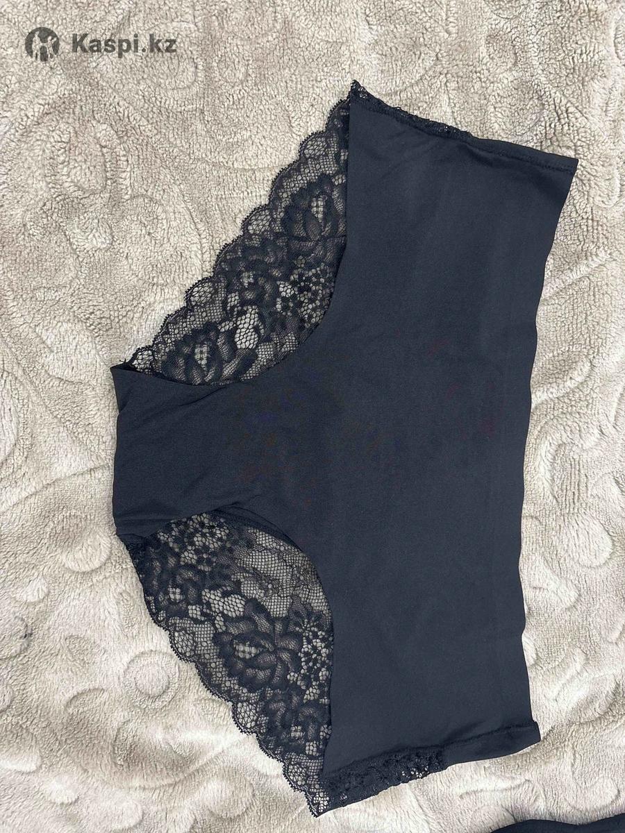 Новые женские трусы. Бесшовные 3XL. Черные атлас кружево 3XL. Высокая посадка 2XL
