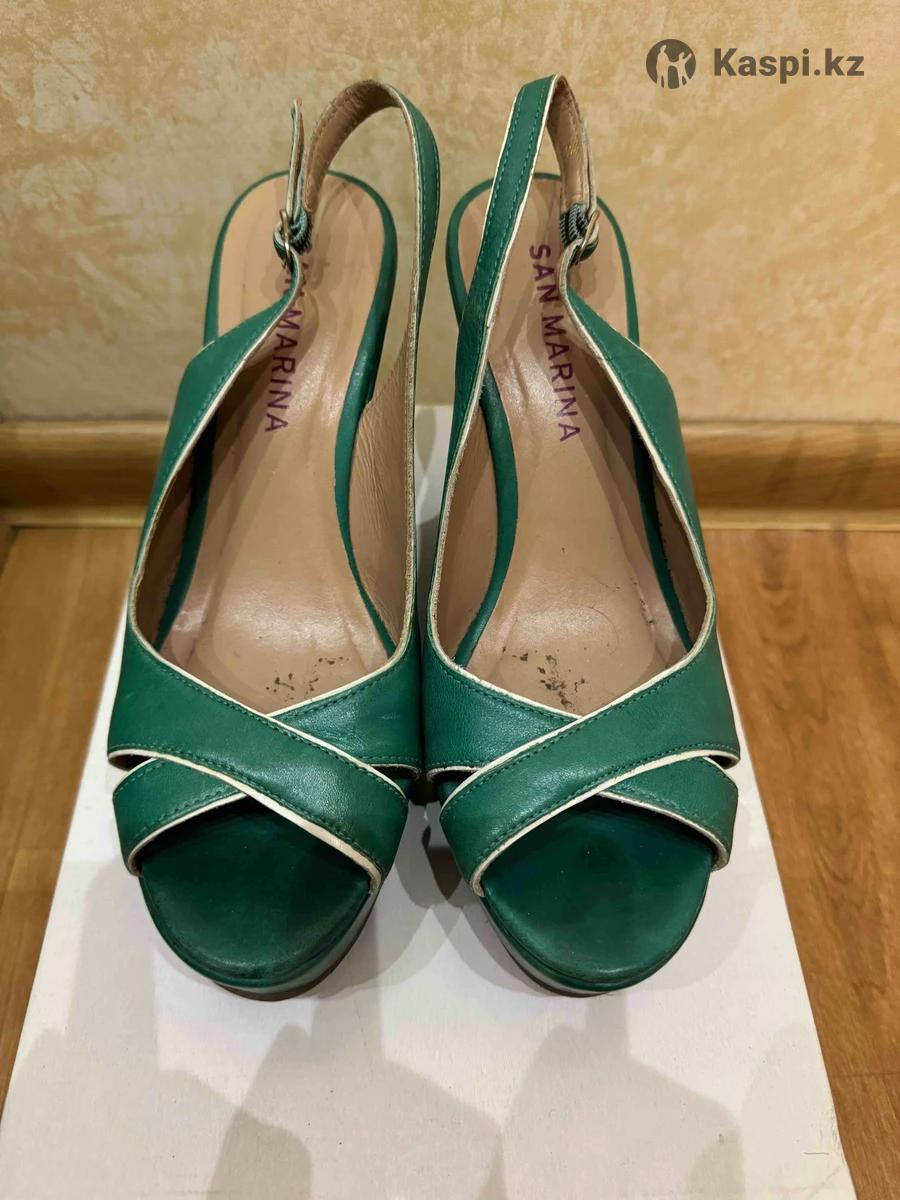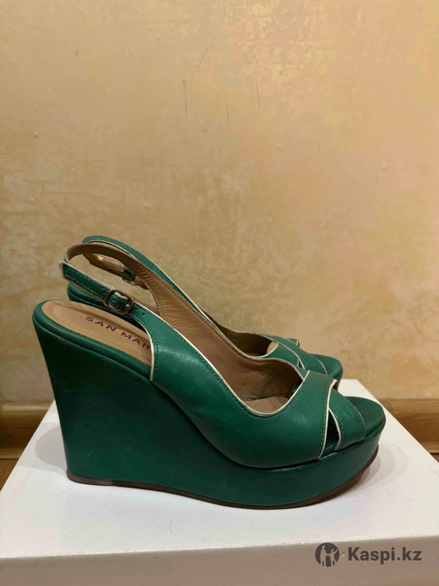 Женские туфли на танкетке. Цвет изумрудный. Платформа 11 см