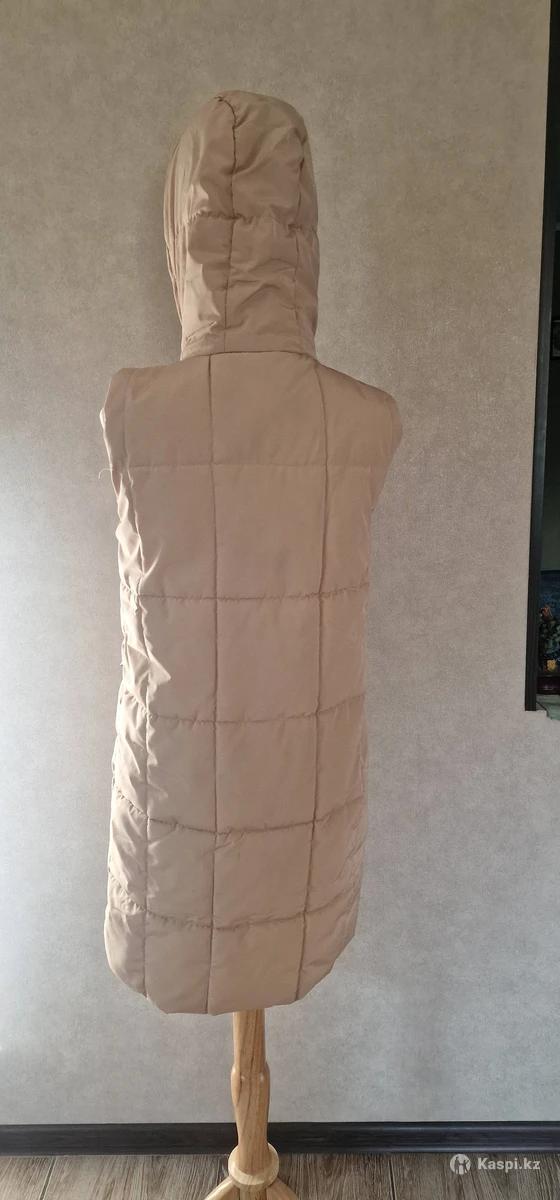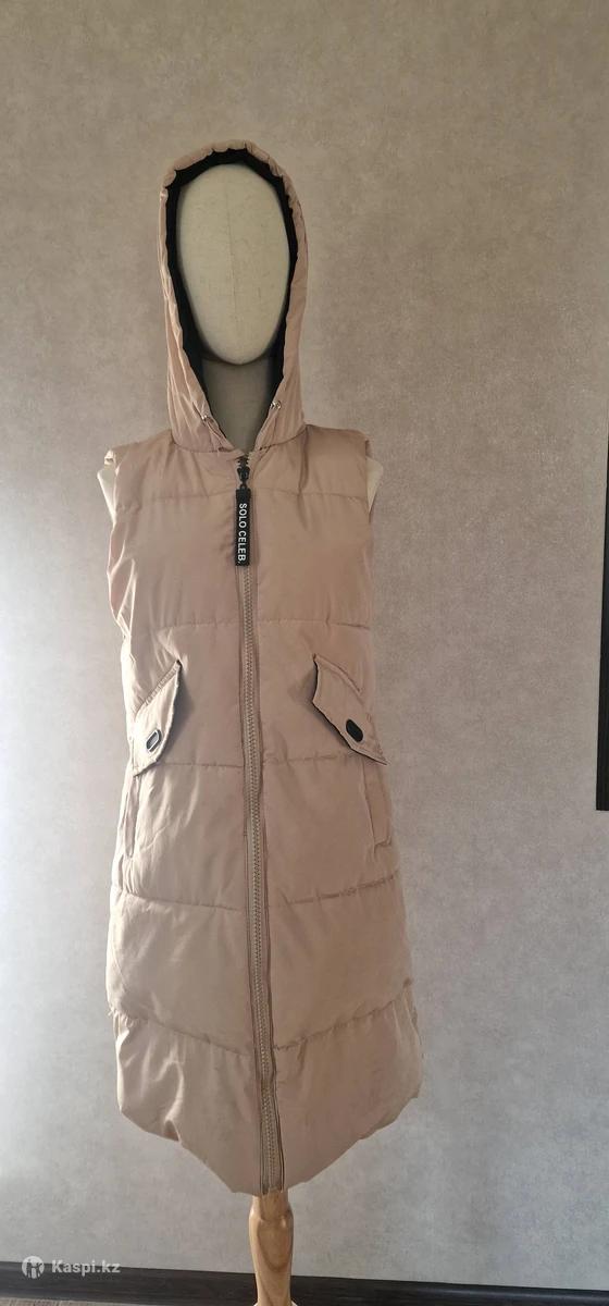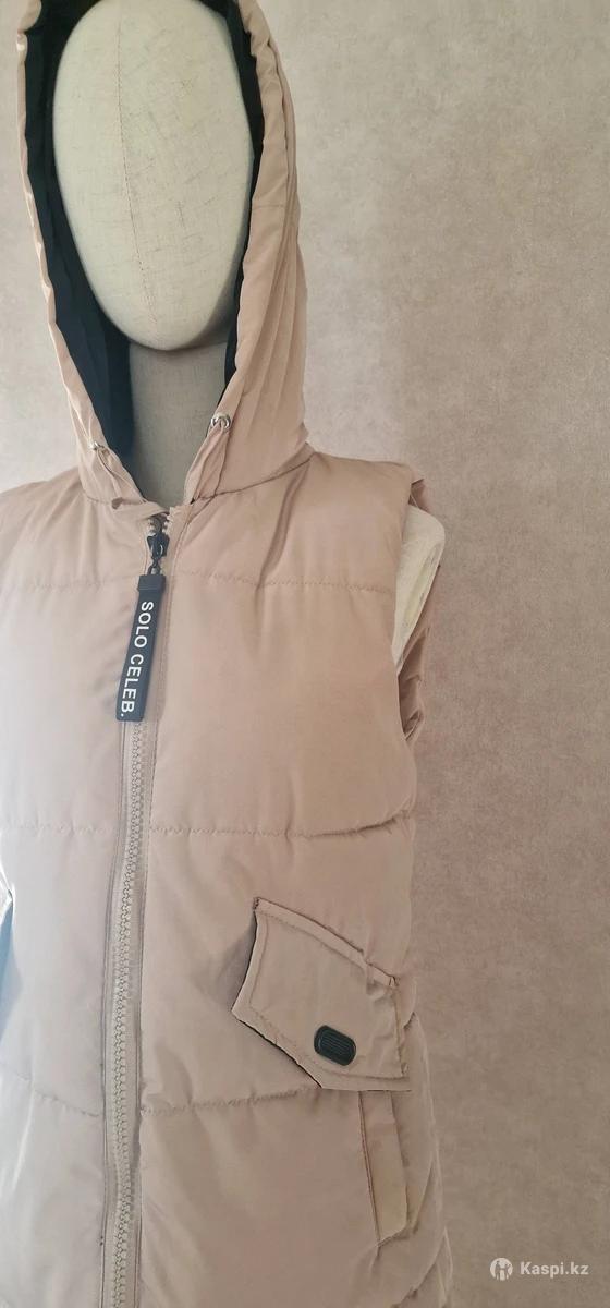 Женский, стеганый жилет , внутри синтепон. С регулируемым капюшоном, карманами, на молнии. Новый. Заказала в интернет магазине. Не подошел.