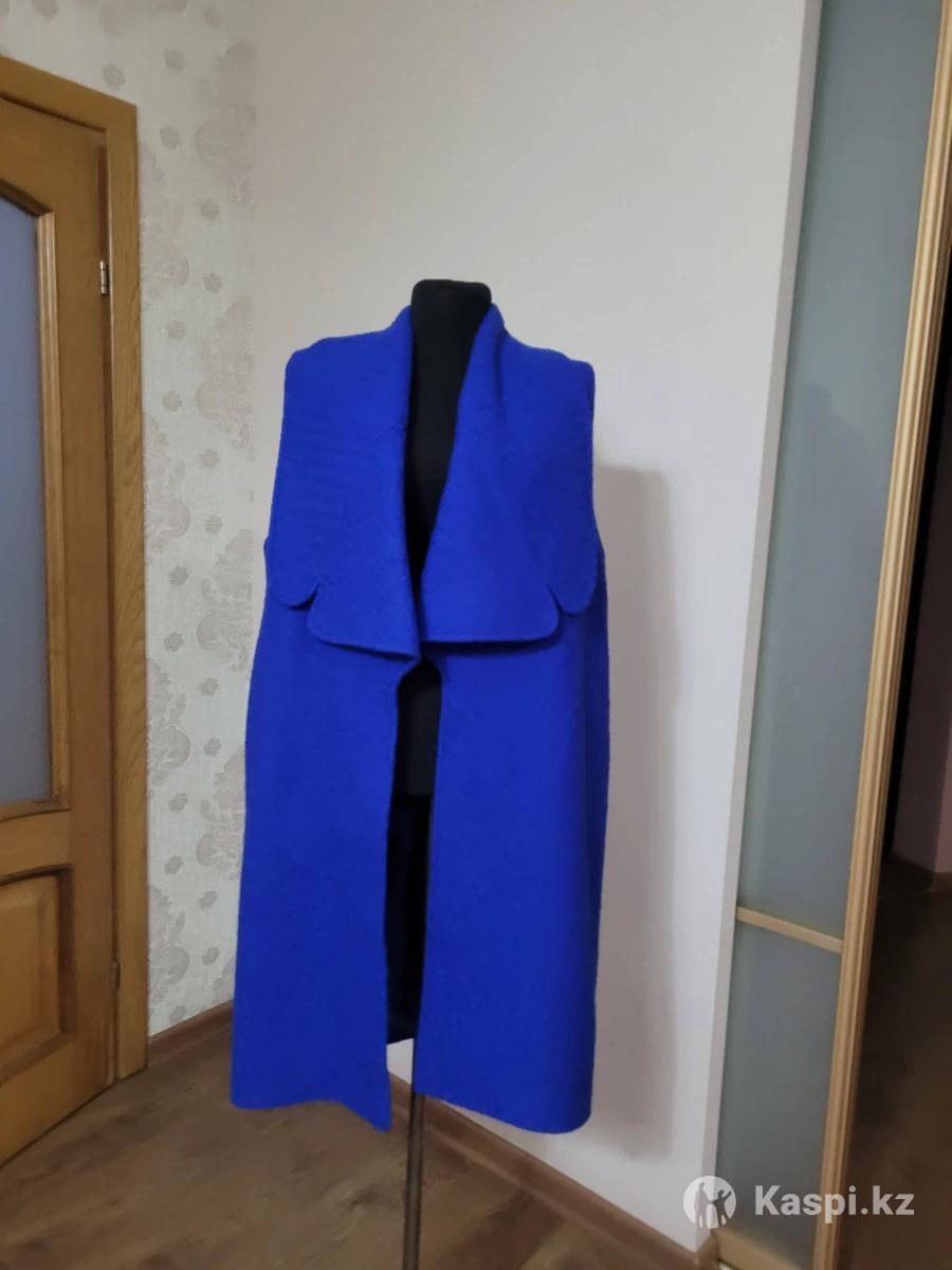 Женский жилет из буклированной шерсти, синего цвета б/у, торг уместен шили на заказ