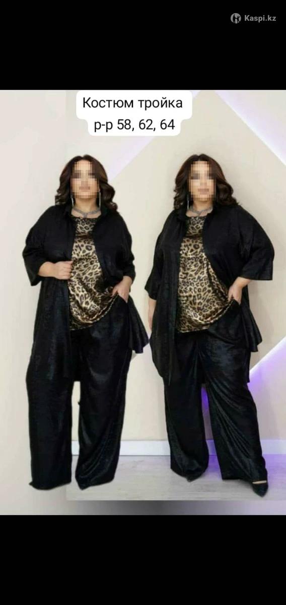 Продаются НОВЫЕ женские костюмы тройка (широкие брюки на резинке с карманами, топ, накидка прикрывает попу) Размеры 58, 62, 64