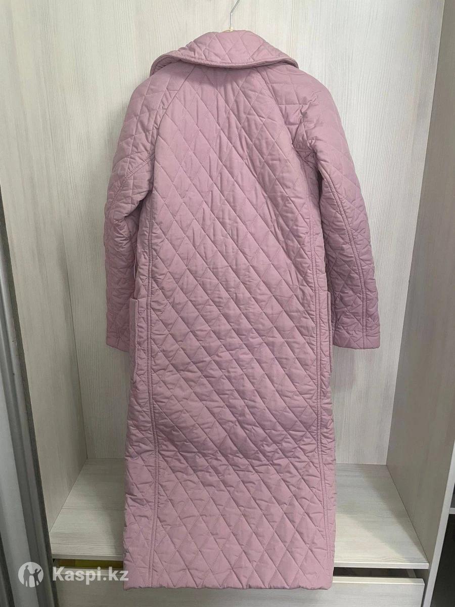 Продается женский стеганый пуховик на поясе с воротником, карманами размер 42-44 розового цвета
