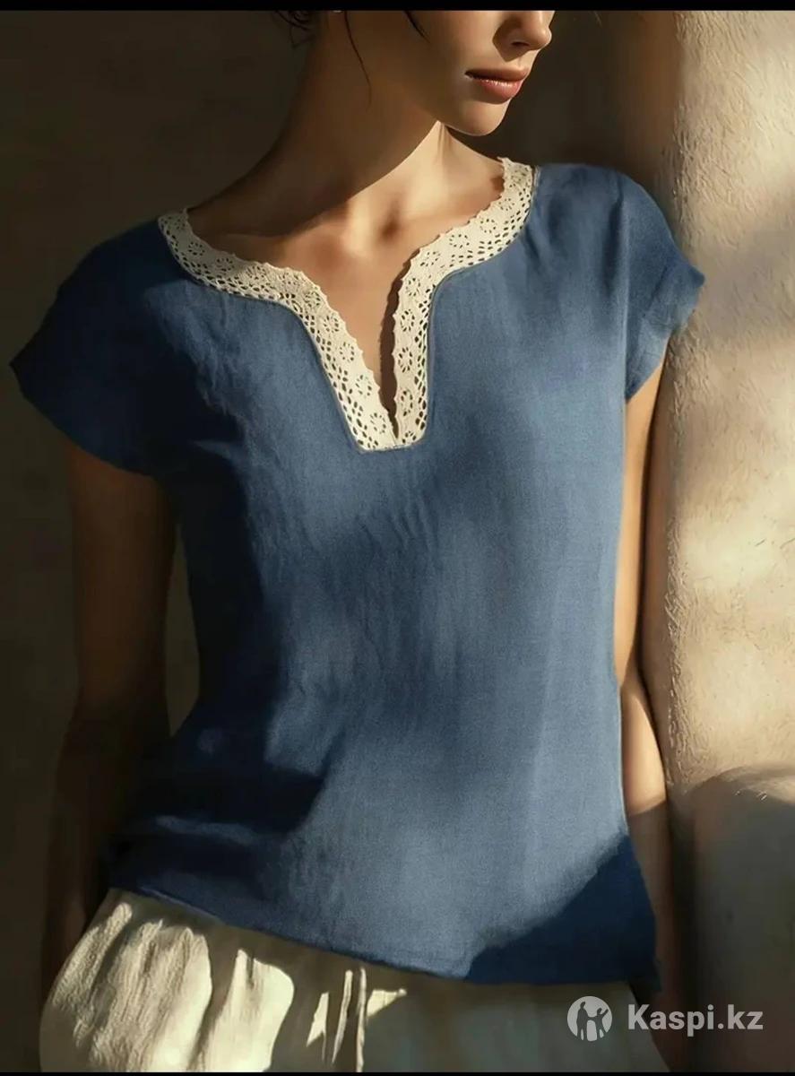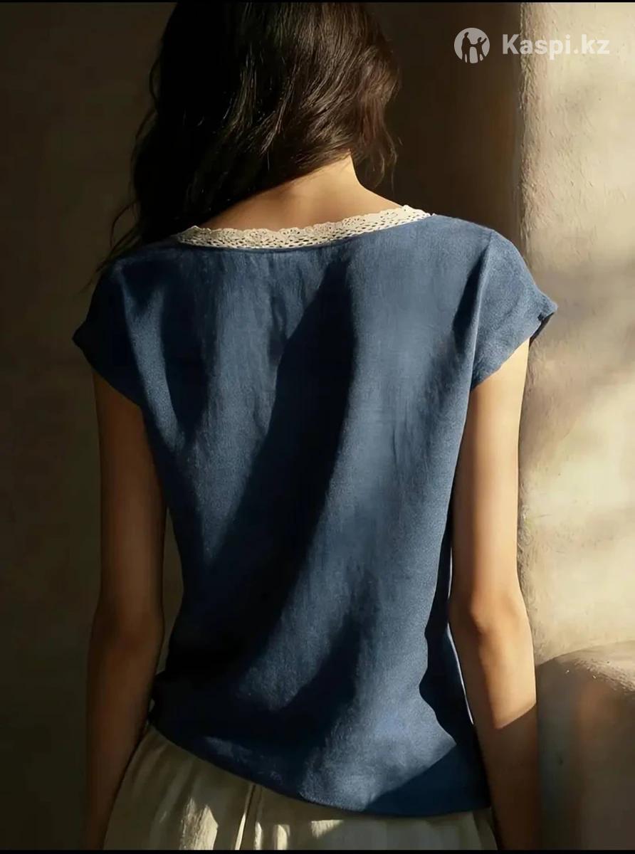 Женский топ на лето. Сделано в Китае. Размер: L. 100% полиэстер. Стильный с кружевным вырезом. В стиле casual. Темно синий цвет