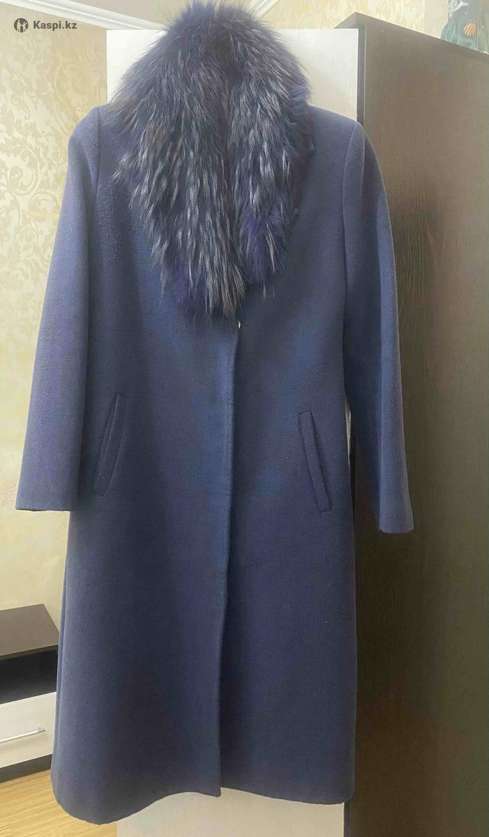 Женское пальто с мехом темно синего цвета. Размер 44-46. Состояние хорошее.