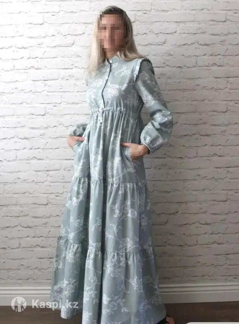 Макси платье с длинными рукавами, имеются карманы. Сезон -весна-лето.