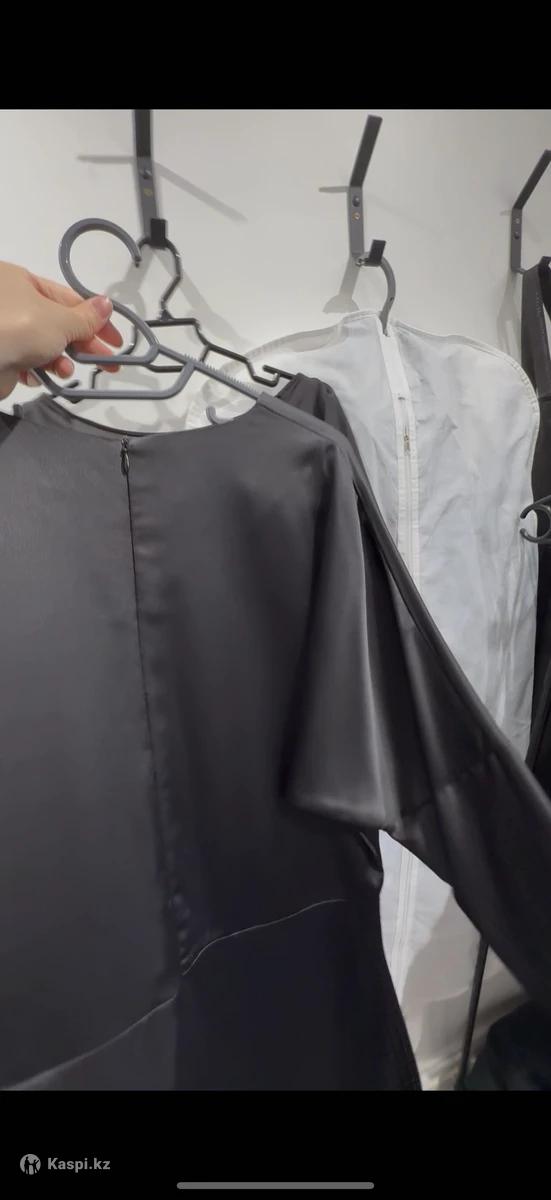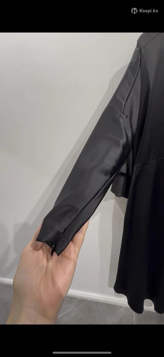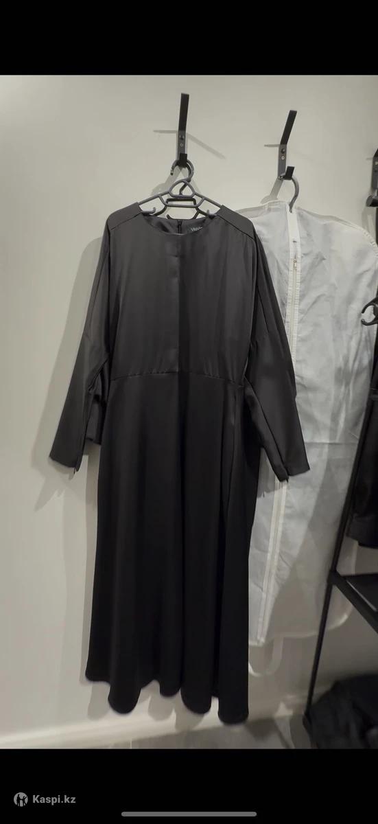 Женское черное платье, материал шелк с атласом. Очень элегантное. На рукавах тонкие замки что придает платью сверх элегантность. Сзади на тонкой молнии. От талии к низу умеренный клеш. Есть тонкие вставки для ремня на талии. Два рабочих скрытых кармана. Одевалось 1 раз на корпоратив. Новое. Чистое. Размер подходит от 44 до 48. Покупала за 80, продаю за 20. Торга нет. Производство Турция.