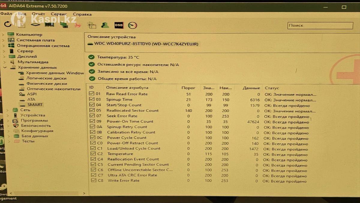 Жесткий диск HDD 4 TB Western Digital Purple в отличном состоянии, фото проверки на ошибки приложил. Вопросы в