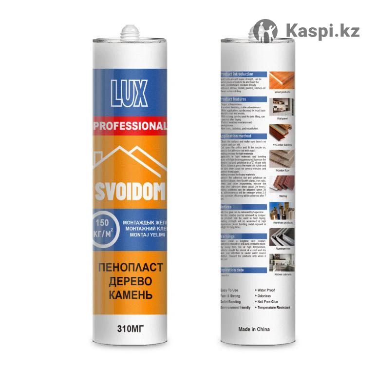 Официальный Представитель в РК. Продукция компании Lux Svoydom Универсальный клей Только Оптом Продается — это высокопрочный универсальный клей для строительных работ. Обеспечивает долговечное сцепление с большинством материалов. Информация о продукте Форма упаковки: Туба 310 мл Цвет: Белый Область применения Подходит для:бамбуковых панелей, древесины, гипсокартона, МДФ, ДСП, бетона, плитки, керамики, металлов, пластика, резины и стекла. Технические особенности - Высокая прочность - Долговечность - Подходит для влажной древесины - Эластичность - Устойчивость к водойе и погоде - Легкость нанесения при низких температурах - Не капает и не растекается Технические характеристики Внешний вид: Гладкая паста Цвет: Белый Технология: Испарение растворителя Время открытой выдержки: 5–10 мин Полное отверждение: 24 ч Срок хранения: 18–24 мес Плотность: 0.96 ± 0.02 г/см3 Сила сцепления: 200 КПа через 24 ч Прочность на сдвиг: 1.3 МПа Прочность на отрыв: 45 Н Статическая нагрузка: выдерживает 60 Н при 40°C в течение 10 дней Инструкция по применению 1. Поверхности должны быть чистыми, сухими, без пыли и жира. 2. Обрежьте наконечник картриджа, установите насадку и срежьте до 5 мм. 3. Нанесите полоску клея на балку, стойку или рейку (каждые 40 см). 4. Прижмите поверхности и зафиксируйте. Регулировка возможна в течение 20 минут. 5. Дайте клею застыть минимум 24 часа перед удалением креплений. Ограничения - Не использовать для зеркал - Не применять при высокой температуре или с нагревающимися металлами - Не использовать с пенополистиролом - Не применять как единственное крепление для несущих конструкций - Не использовать при постоянном контакте с вод