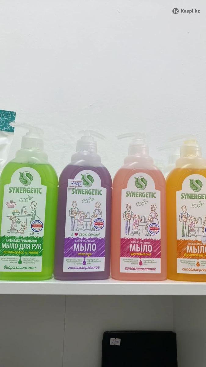 в наличии есть разные жидкое мыло от Synergetic 500ml-1300 tg.