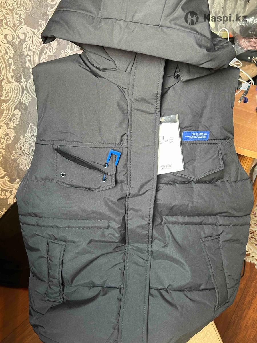 Новый черный жилет с капюшоном. Утепленный