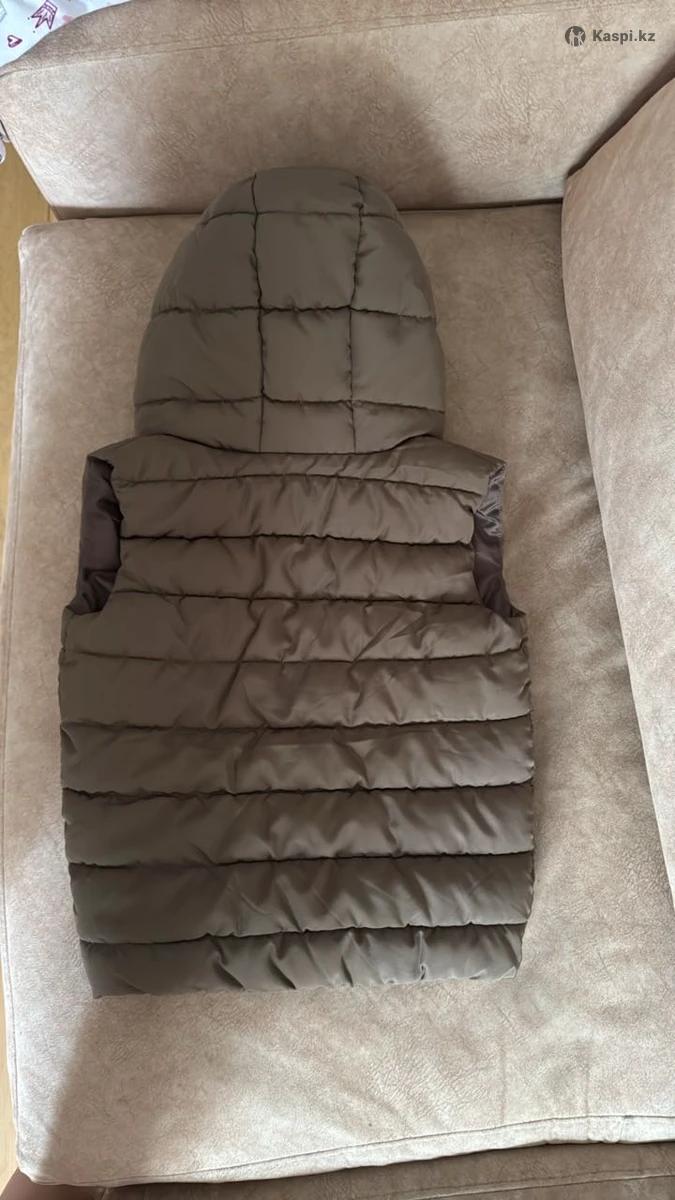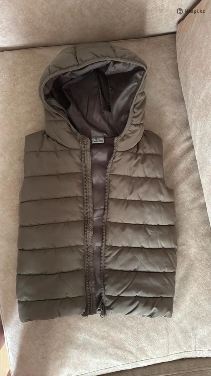 Очень теплый жилет цвета хаки с несъемным капюшоном DeFacto. Носил ребенок буквально пару раз, и вырос 😄 Состояние нового.
