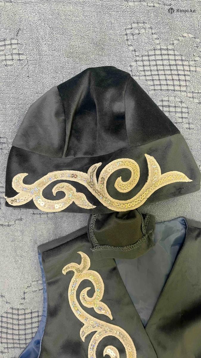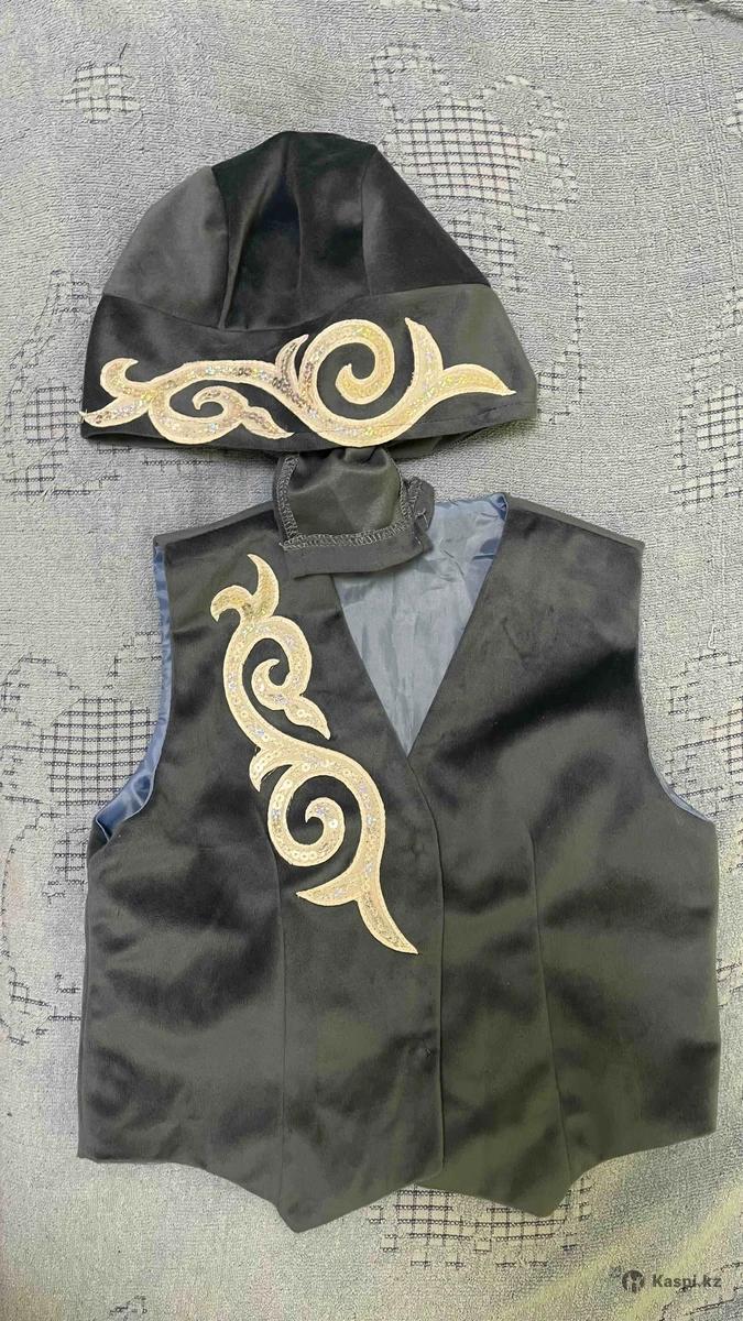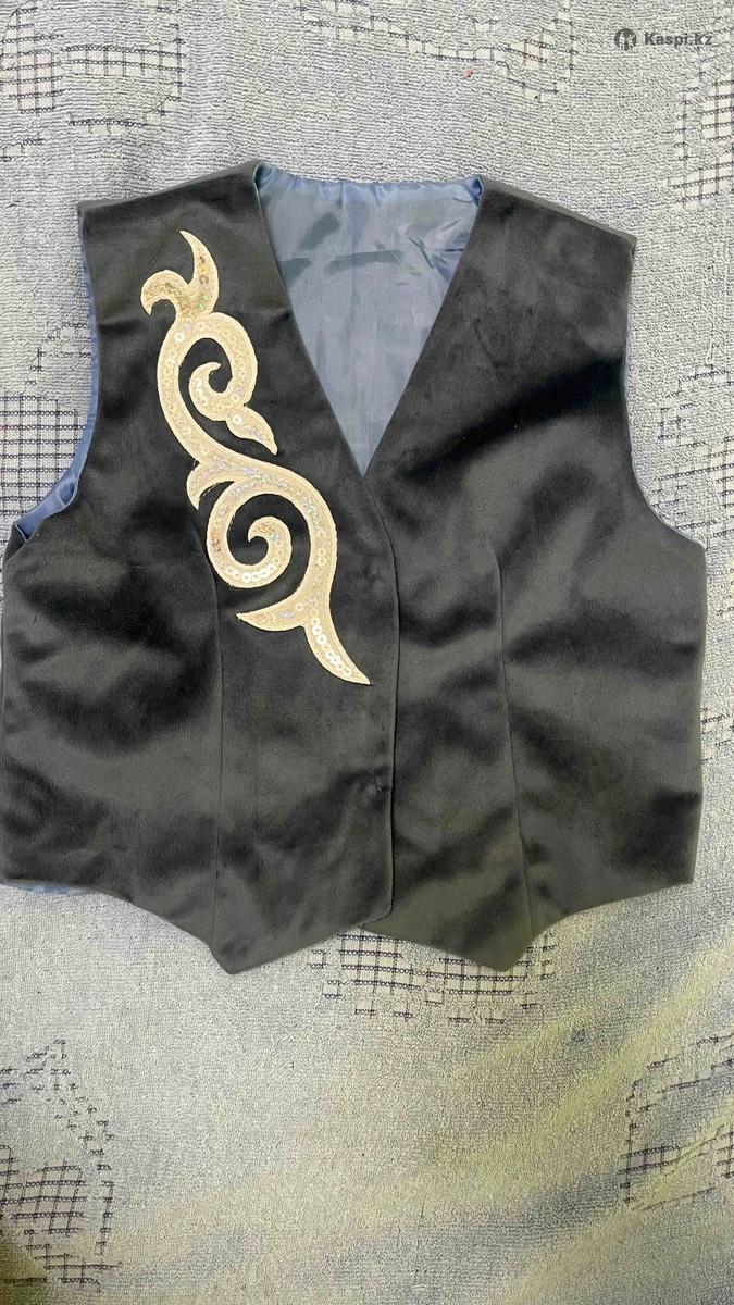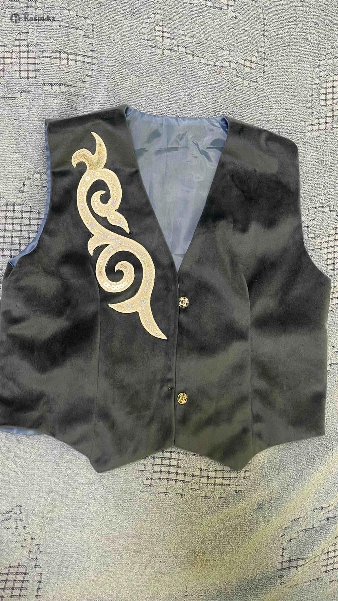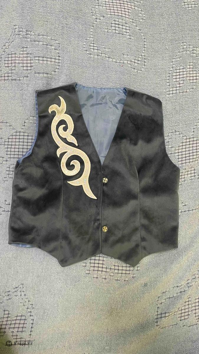 Жилетка с казахскими орнаментами, темно голубого цвета