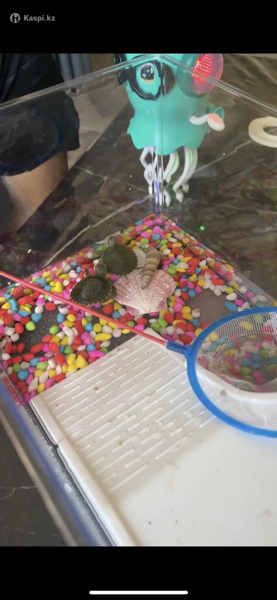 Красноухие черепахи 🐢 с аквариумом и украшением для аквариума и корм для черепахи