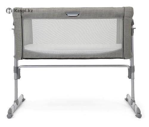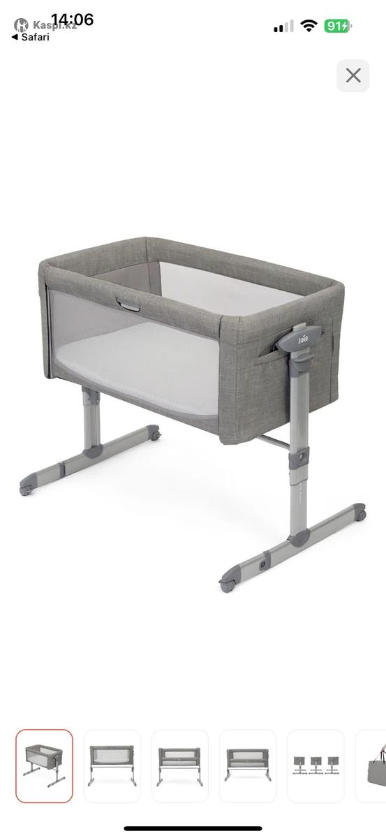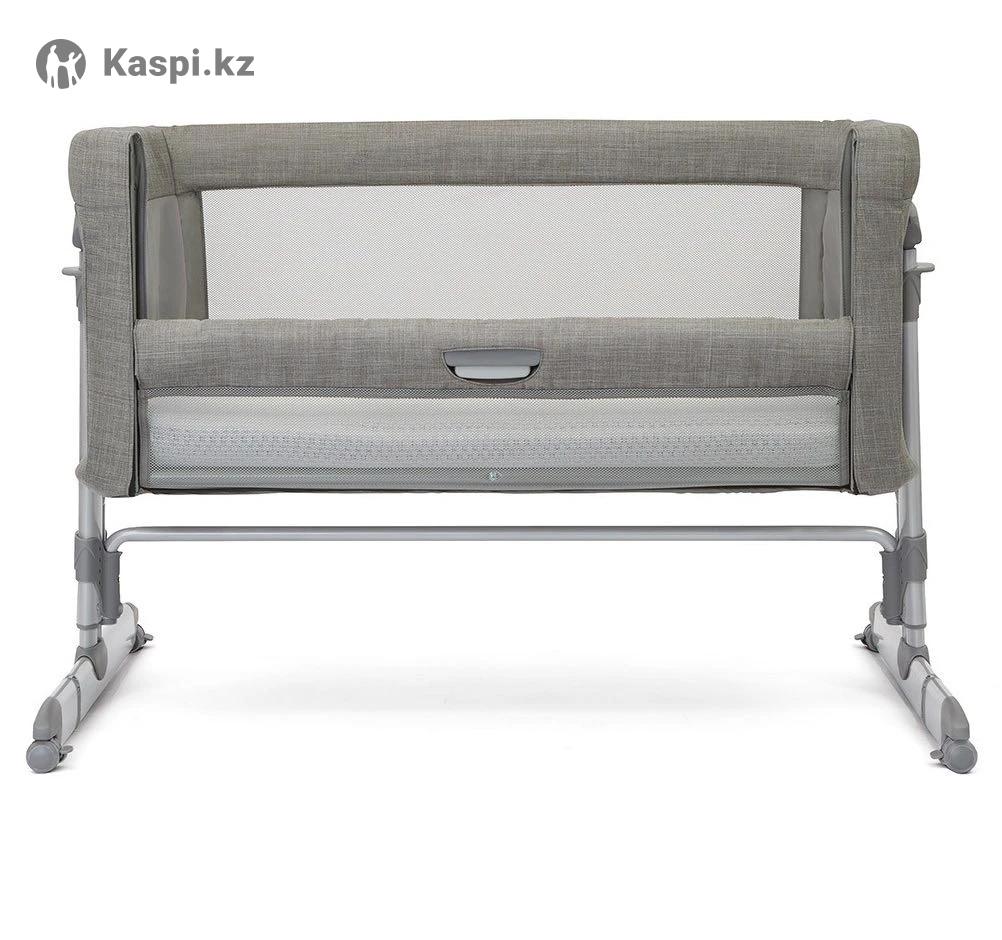 Манеж Joie Roommie Glide Foggy Gray. Характеристики: Для детей с рождения до 9 кг. Боковая панель опускается и поднимается (11 позиций высоты). Укачивающий механизм с фиксацией для сна. Мягкий матрас и вентилируемые сетчатые стороны колыбели. Съемный чехол матраса легко постирать. 10 позиций наклона кроватки для профилактики срыгивания. 4 резиновых блокируемых по отдельности колеса. Ножки кровати регулируются и встают вплотную к кровати. Страховочный ремень крепится к матрасу родительской кровати. В комплекте: ремни, сумка для переноски. Вес: 11.9 кг
