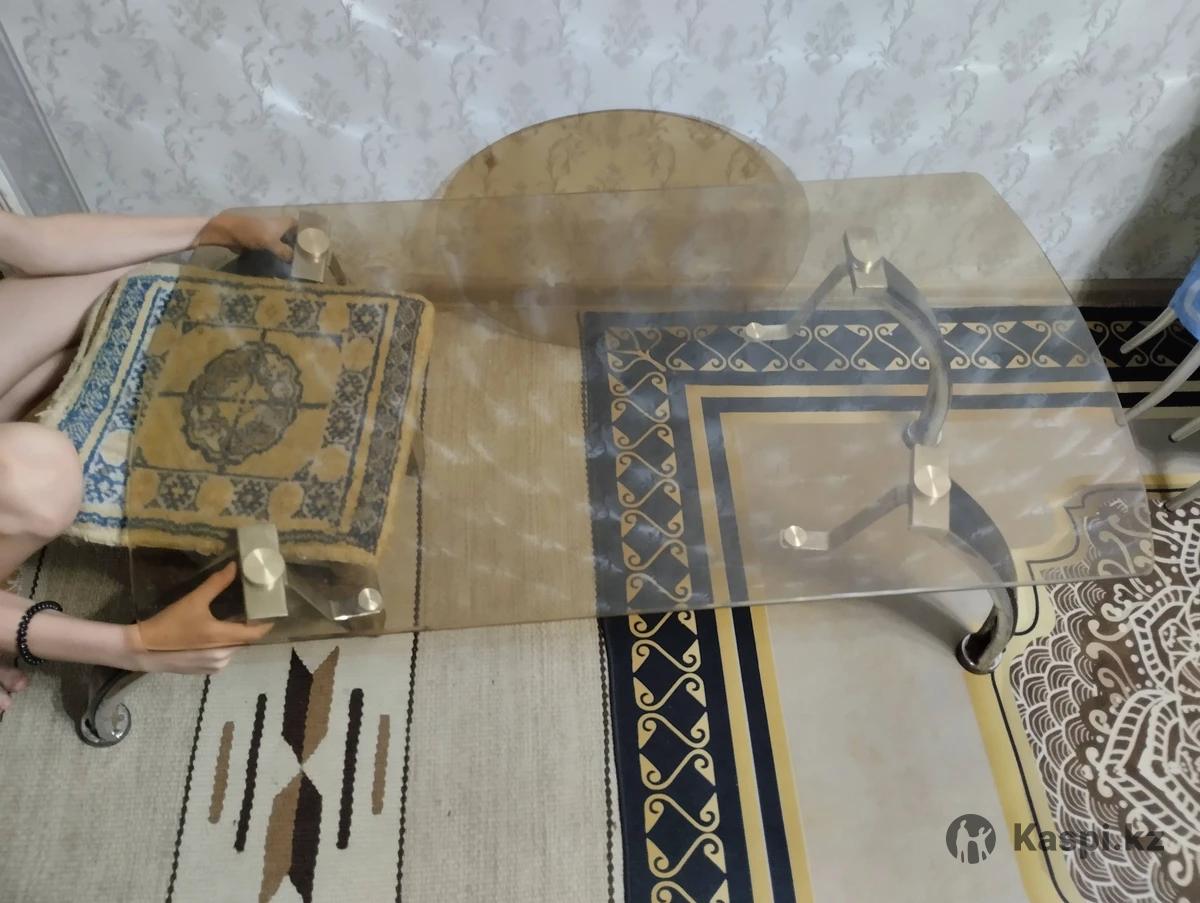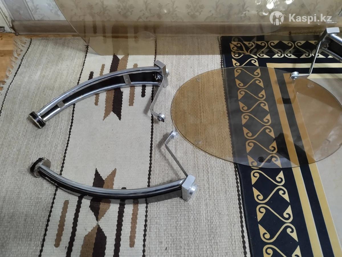 Журнальный стеклянный столик, отклеились две ножки. Дведругие держатся крепко. Длина 1 метр 06 см. Ширина 60 см.