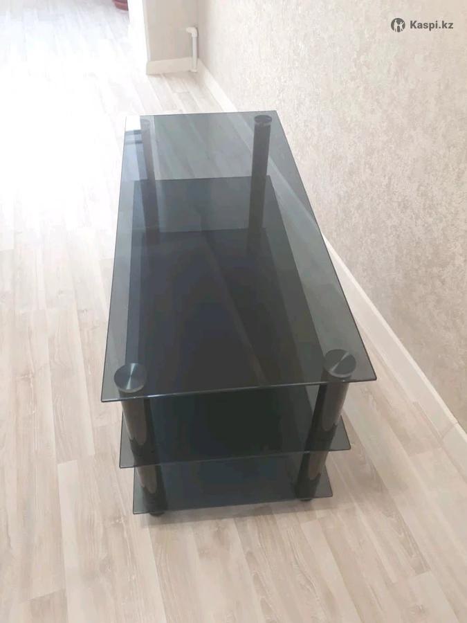Стол журнальный, можно, как подставку под телевизор. Стекло, черный. Размер 1м 45 см