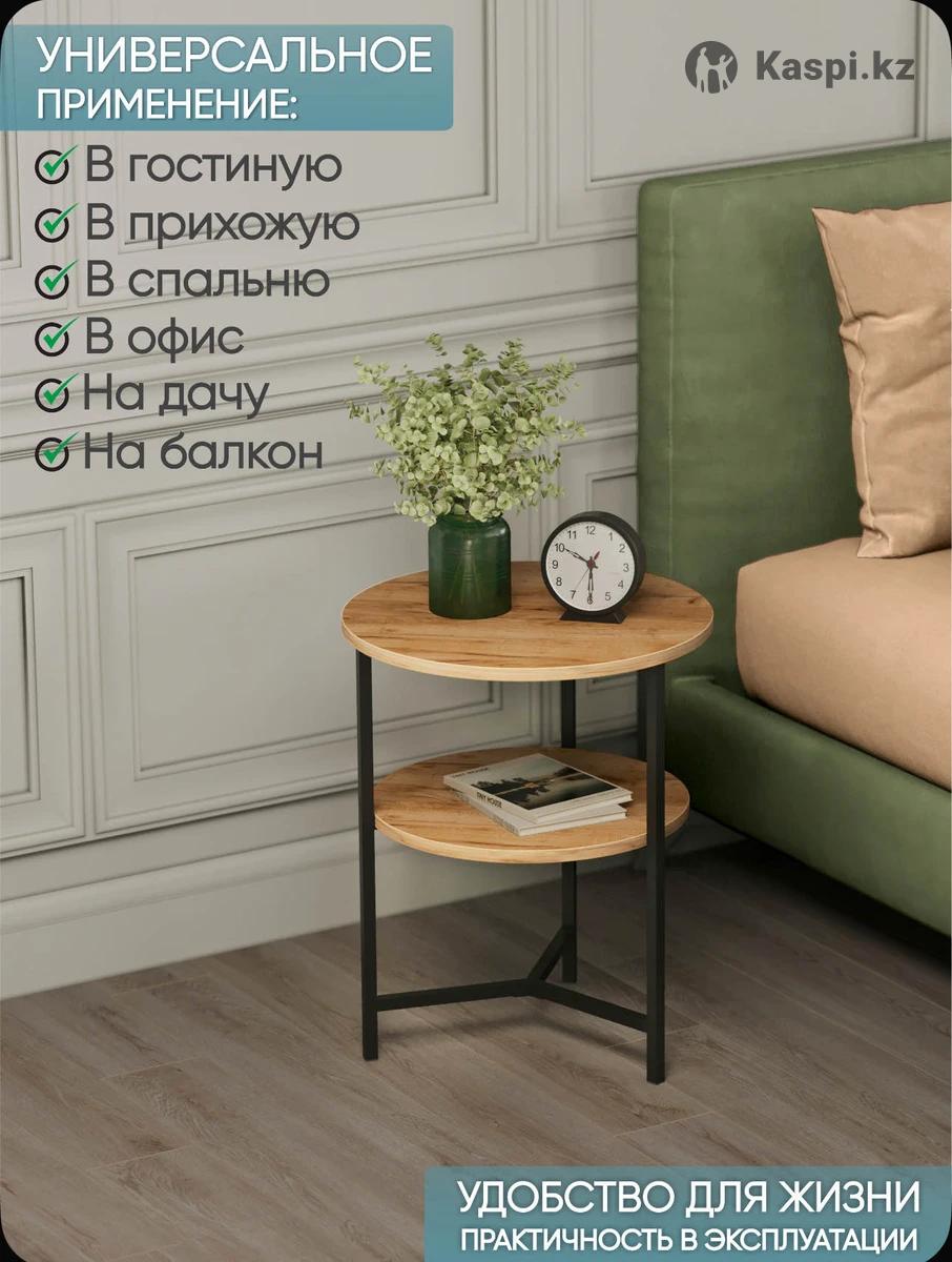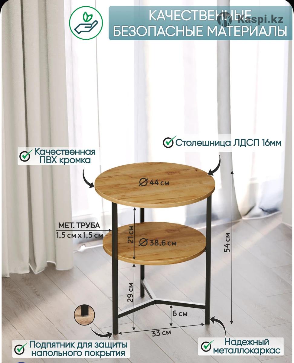 Материал: ЛДСП класса Е1, кромка ПВХ 1 мм, металлическая труба 1,5 х 1,5 см. Габаритные размеры: ширина 44 см, глубина 44 см, высота 54 см. Металлические ножки изготавливаются из стальной трубы и опираются на пластиковые заглушки, что бы не повредить Ваше напольное покрытие. Покрытие металла: порошковая окраска с последующей термообработкой в печи при температуре 200 градусов. Порошковое покрытие ножек предотвращает образование коррозии и устойчиво к появлению царапин. При эксплуатации столика, в случае попадания воды, необходимо сразу протереть насухо. Максимальная нагрузка на столик не более 15 кг. Не рекомендуется вставать или садиться на столик. Вес стола 4 кг. СТОЛИК В РАЗОБРАННОМ ВИДЕ, Собирается легко и просто! Также действует рассрочка и ред