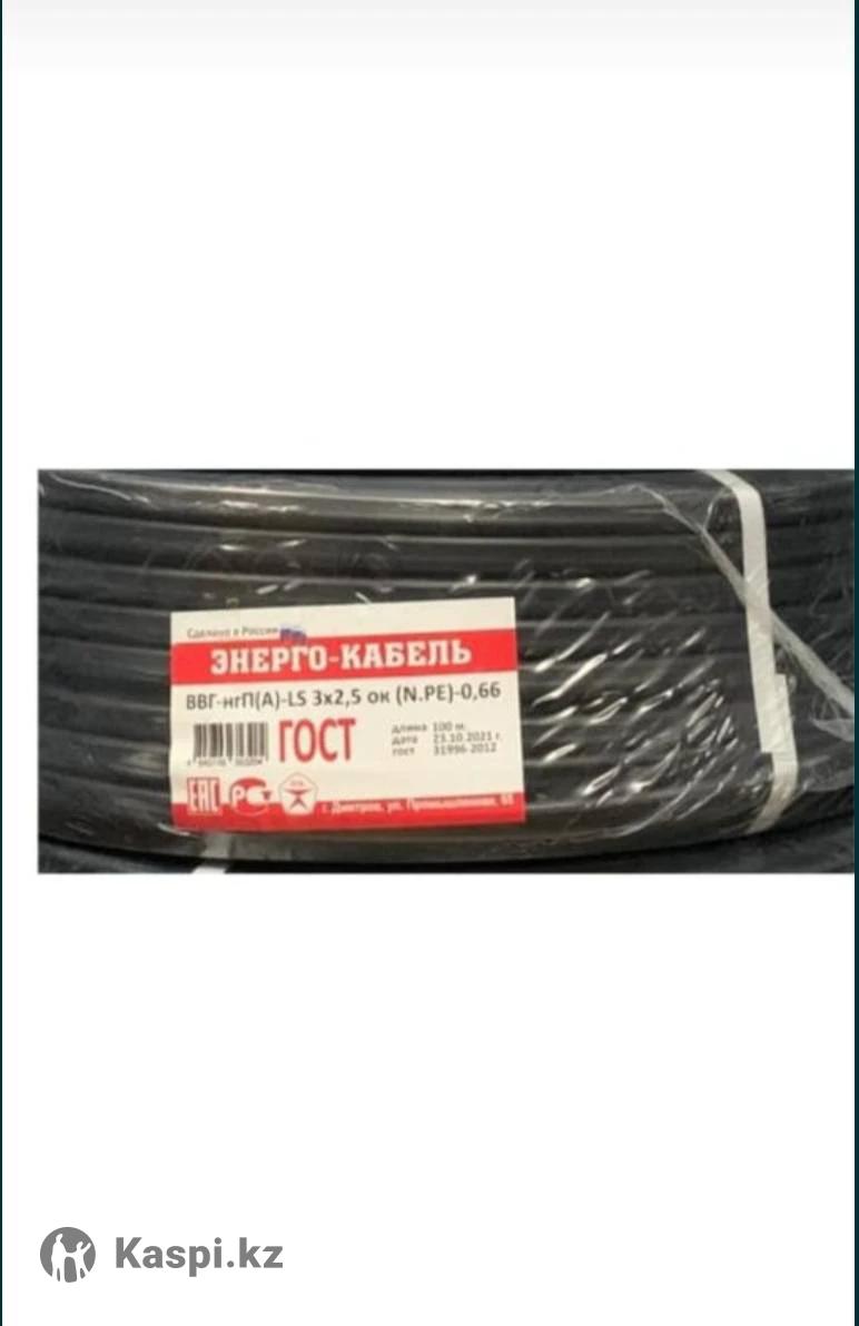 Энерго-кабель трехжильный российского и казахстанского производства, ВВГ-НГ 32,5 mm 2, 1 метр 370, тк, гост 450 тг. Есть и другие разные кабели, пишите, спросите. Есть доставка, отправляем через Яндекс или индрайвер